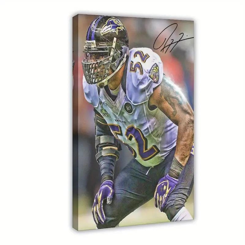 Image printed on canvas measures 16" x 24" in size and features Ray Lewis (Baltimore Ravens). Please note, this item is unsigned. Image is printed on quality canvas and finished with protective coating to prevent exterior damage.