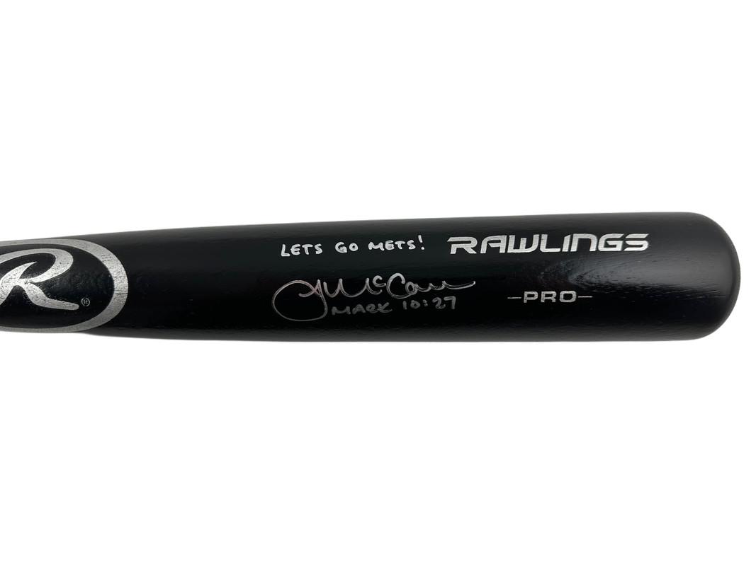 Rawlings Pro baseball bat has been hand-signed and inscribed by James McCann (New York Mets).