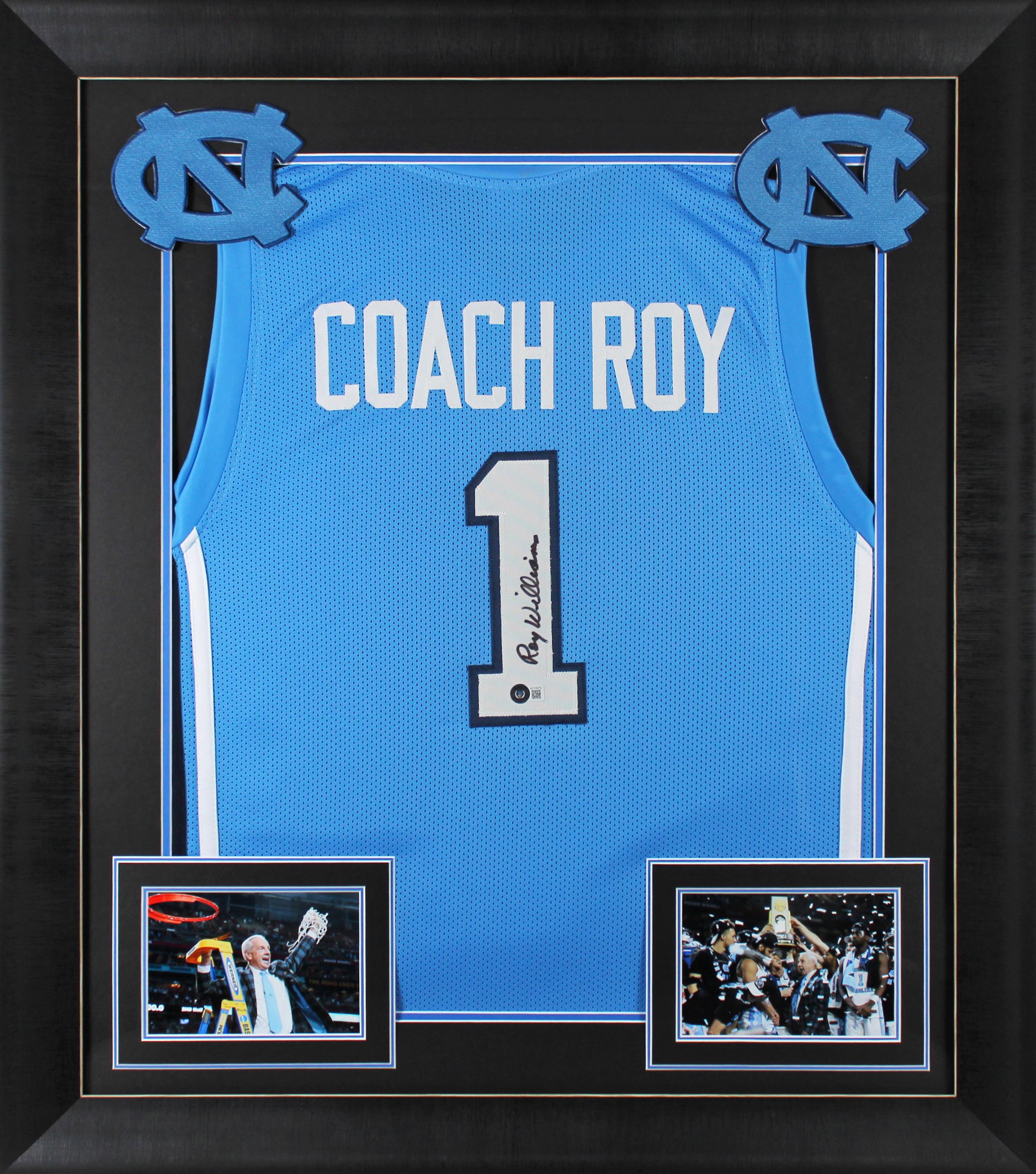 Custom frame measures 32" x 37" in size and features a jersey that has been hand-signed by Roy Williams.
