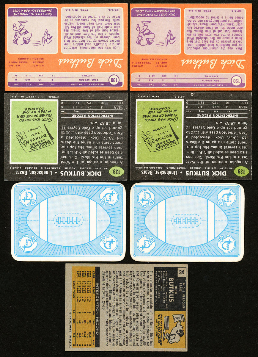 Lot of (7) Vintage Dick Butkus Cards with (2) 1969 Topps #139, (2) 1970 Topps #190, 1971 Topps #25