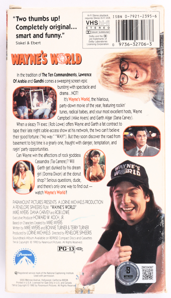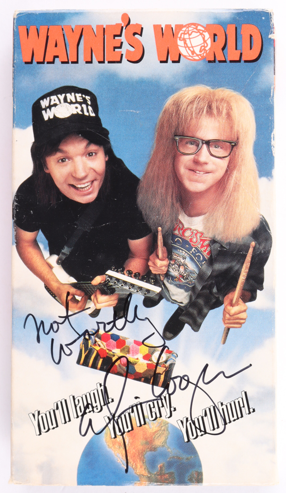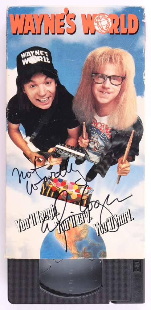 "Wayne's World" Original VHS tape. Hand-signed and inscribed by Alice Cooper. Please note, there is scuffing and edge wear and tear on the original VHS cover sleeve.