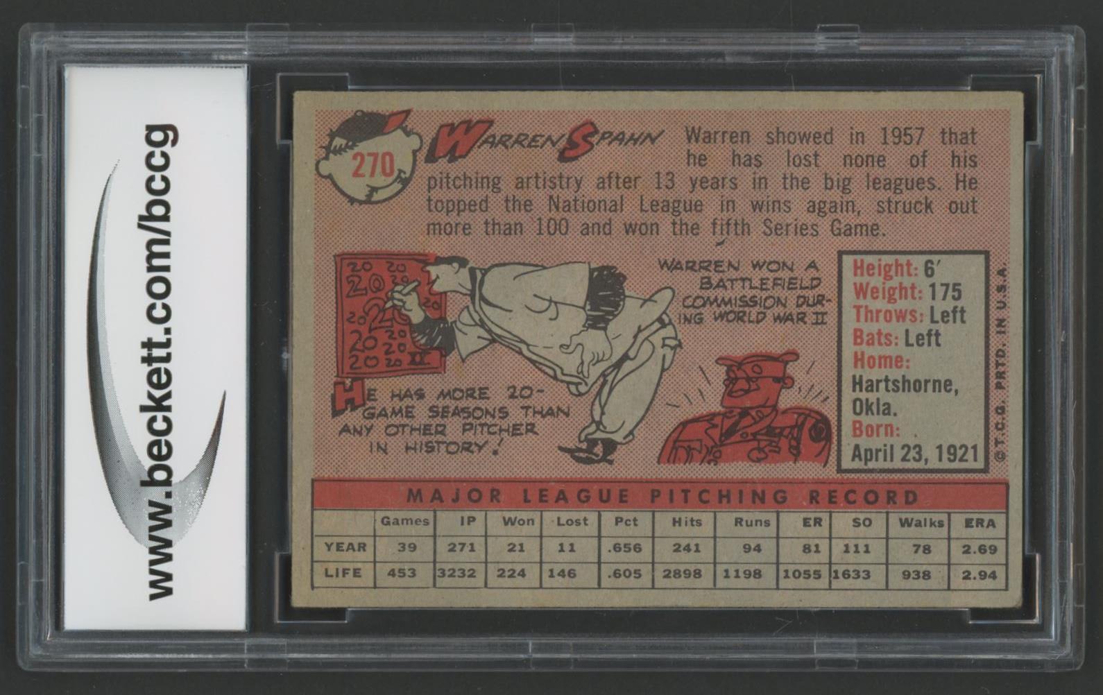 Warren Spahn 1958 Topps #270 (BCCG 8)