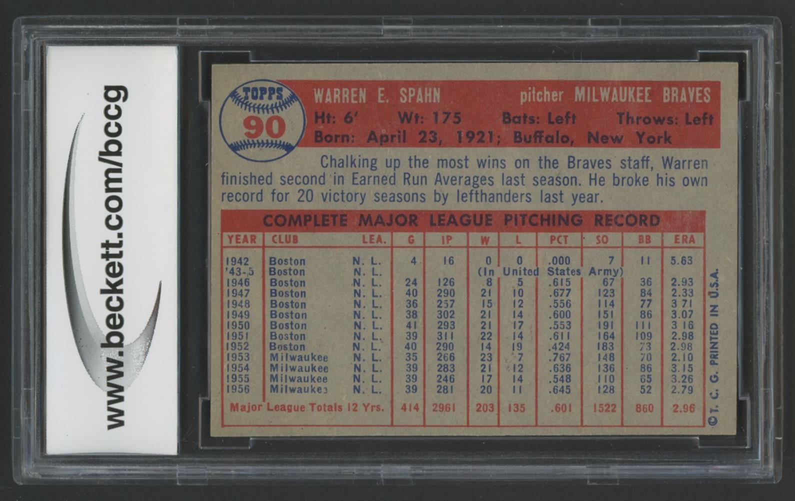 Warren Spahn 1957 Topps #90 (BCCG 9)