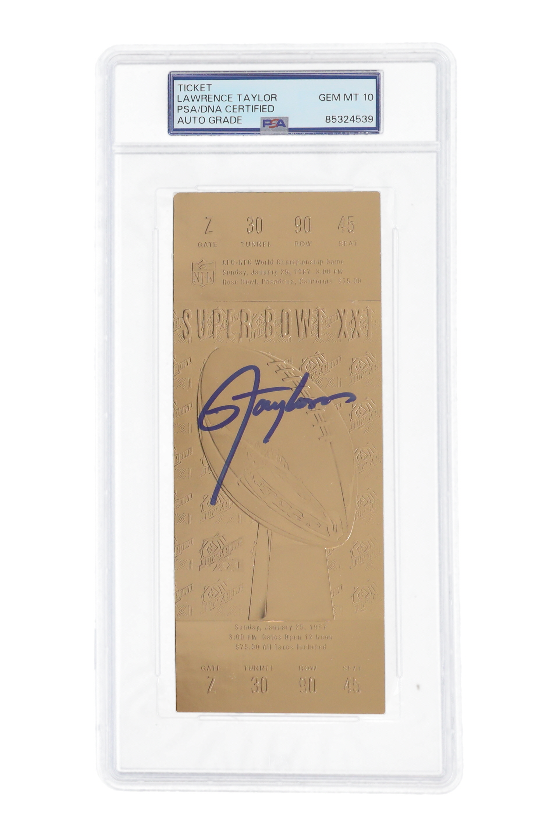 Lawrence Taylor Signed Super Bowl XXI Commemorative Ticket (PSA | Auto Grade 10)