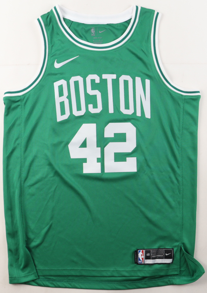 Nike jersey with everything pressed on, size 48. Hand-signed by Al Horford. Please note, there is an ink stain on the reverse number. See photos regarding the condition of the item.