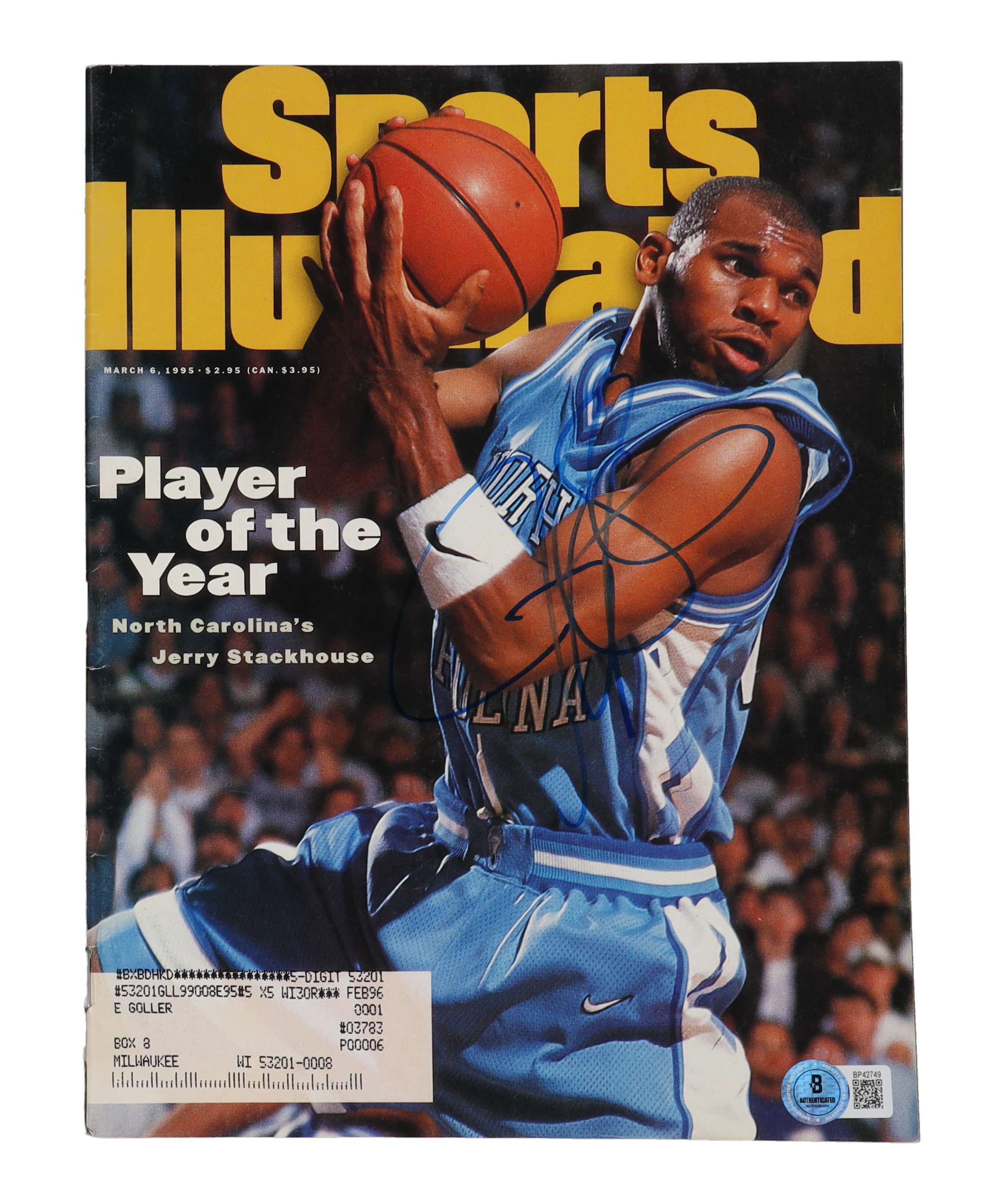 March 6th, 1995 issue of Sports Illustrated magazine has been hand-signed on the cover by Jerry Stackhouse (North Carolina Tar Heels). Refer to photos for more details.