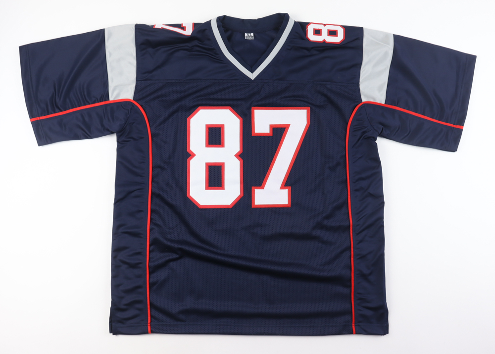 Custom jersey with everything sewn on, size XL. Hand-signed by Rob Gronkowski.