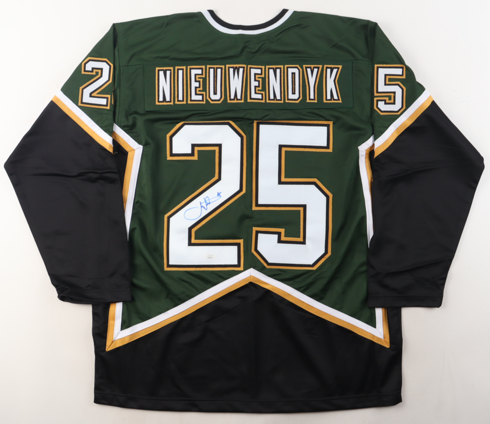 Custom jersey with everything sewn on, size XL. Hand-signed by Joe Nieuwendyk.