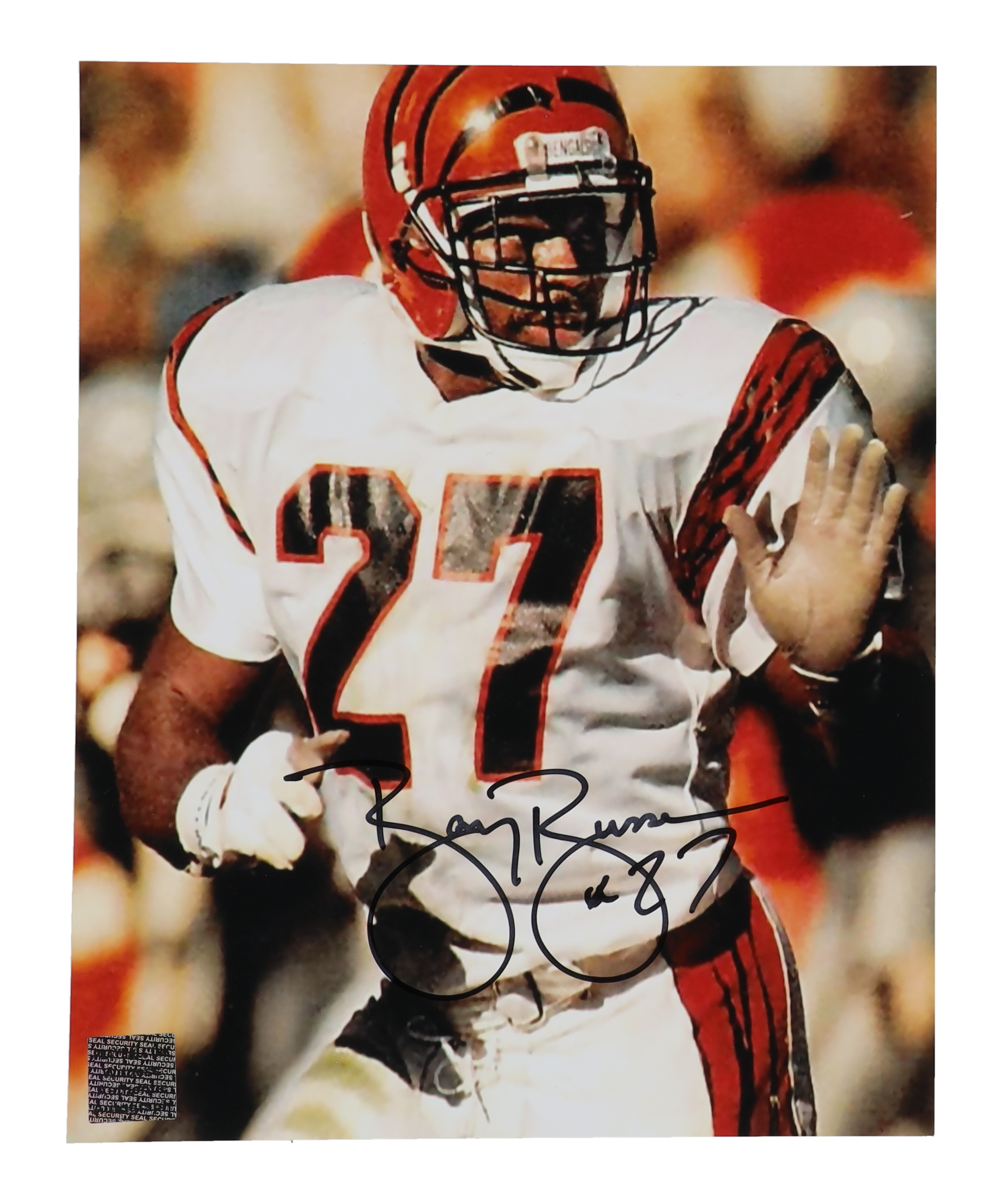Photo measures 8" x 10" in size and has been hand-signed by Barney Bussey (Cincinnati Bengals).
