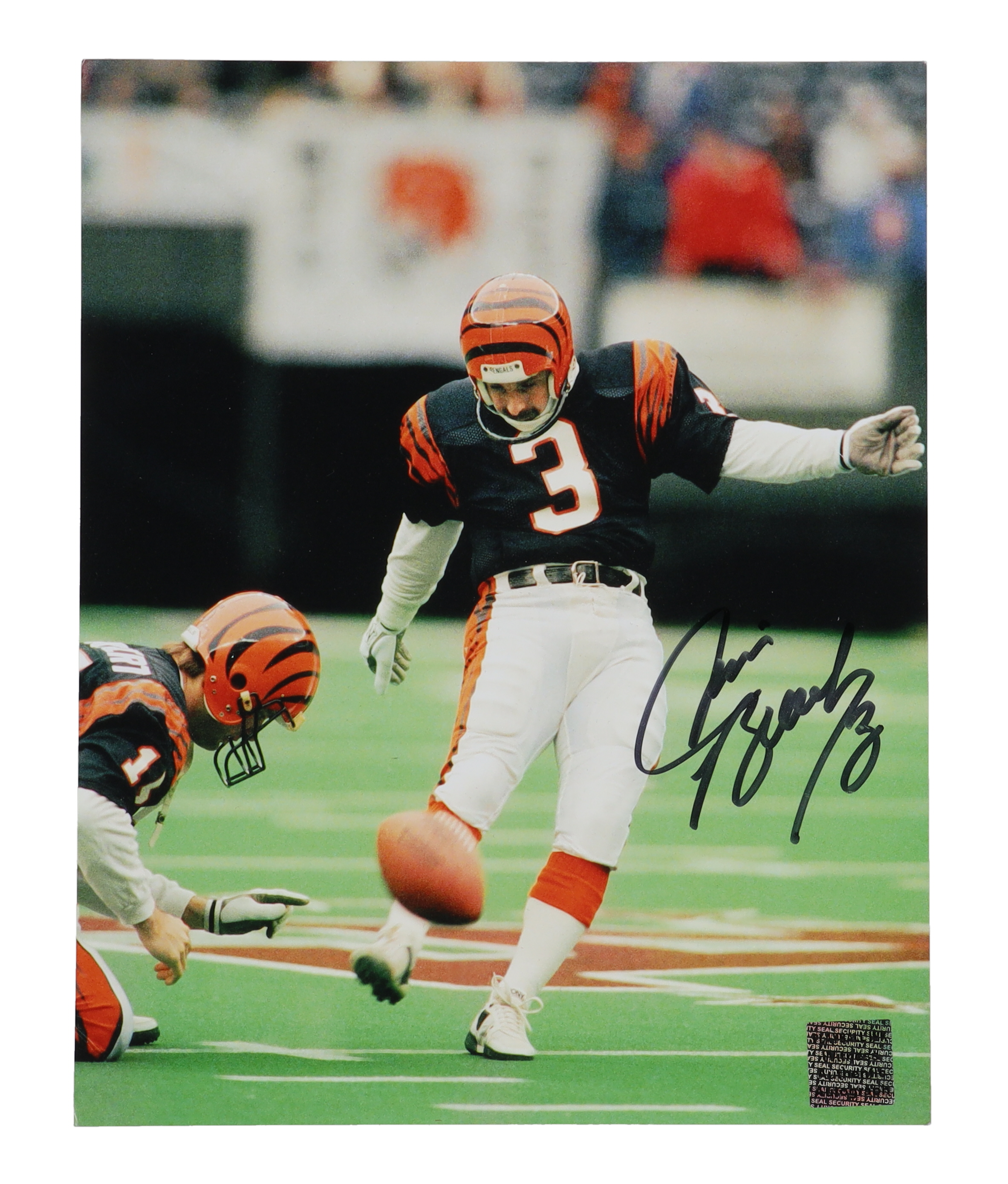 Photo measures 8" x 10" in size and is hand-signed by Jim Breech (Cincinnati Bengals).
