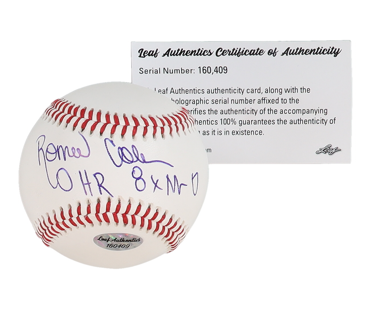 Rawlings R100-P baseball has been hand-signed and inscribed by Ronnie Coleman (HOF). Please note, baseball is naturally toned.