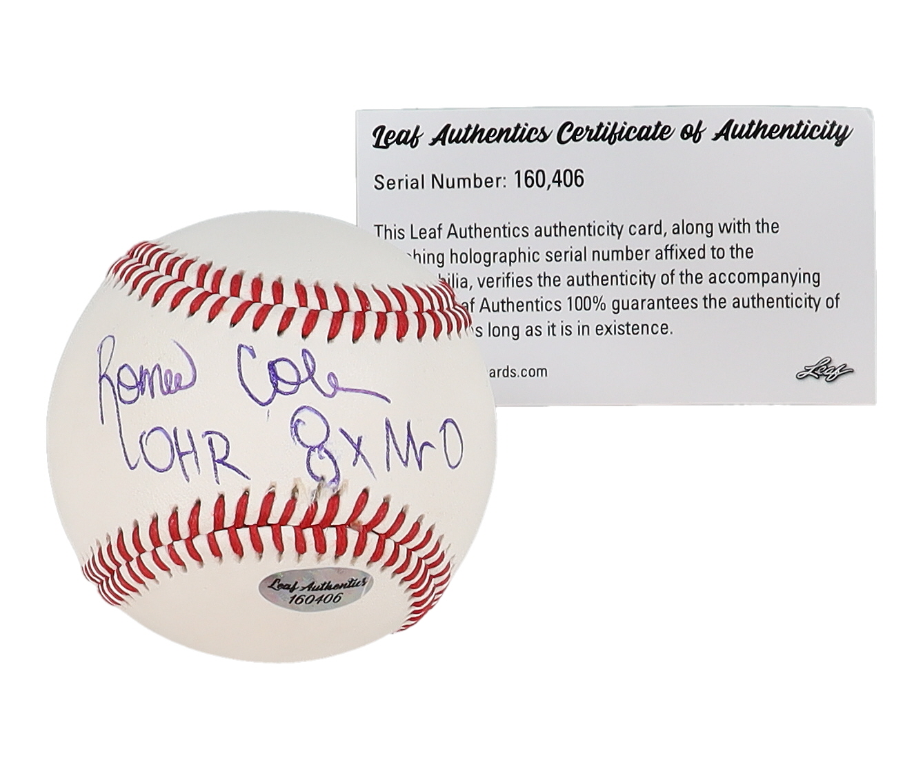 Rawlings R100-P baseball has been hand-signed and inscribed by Ronnie Coleman (HOF). Please note, baseball is naturally toned.