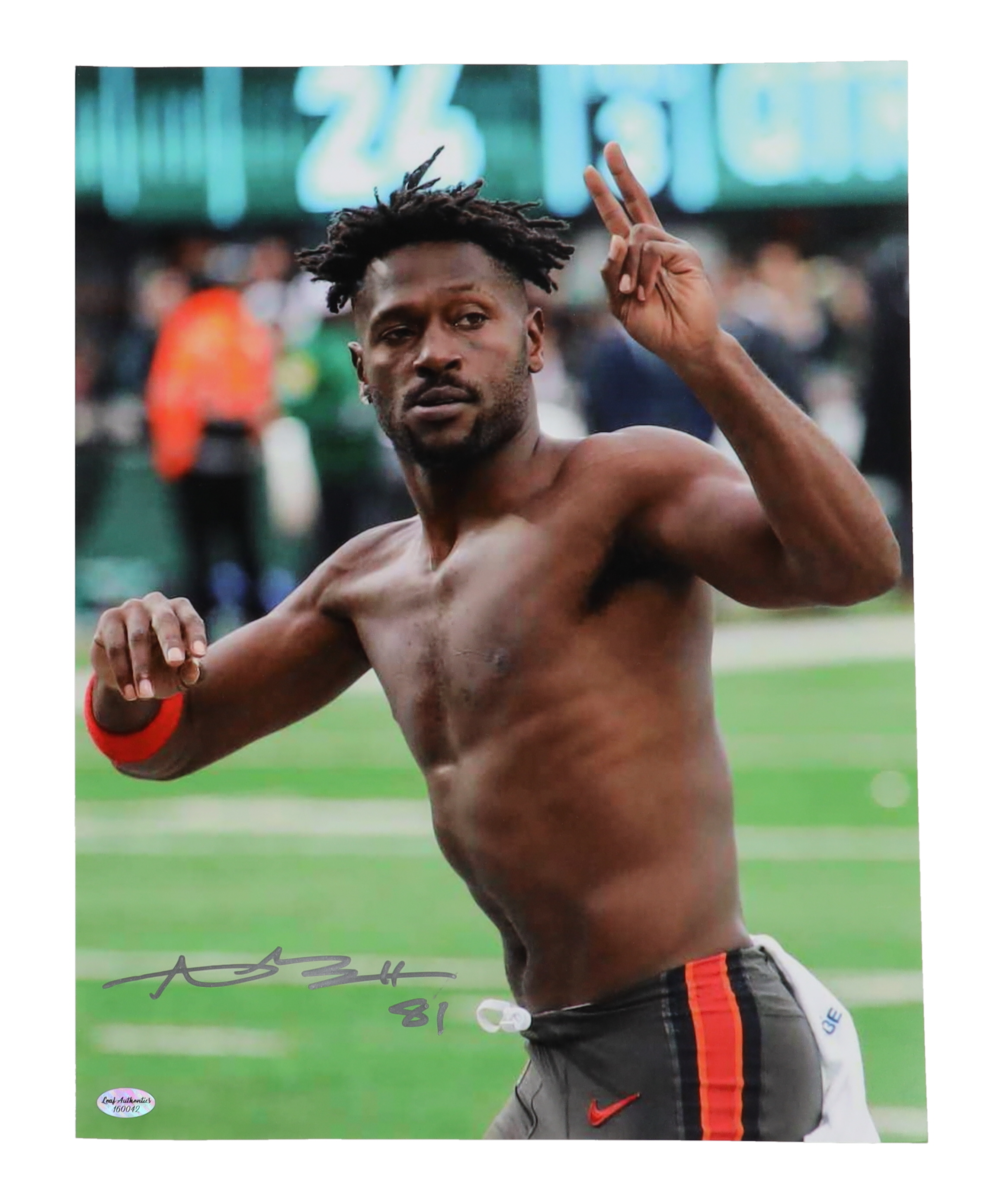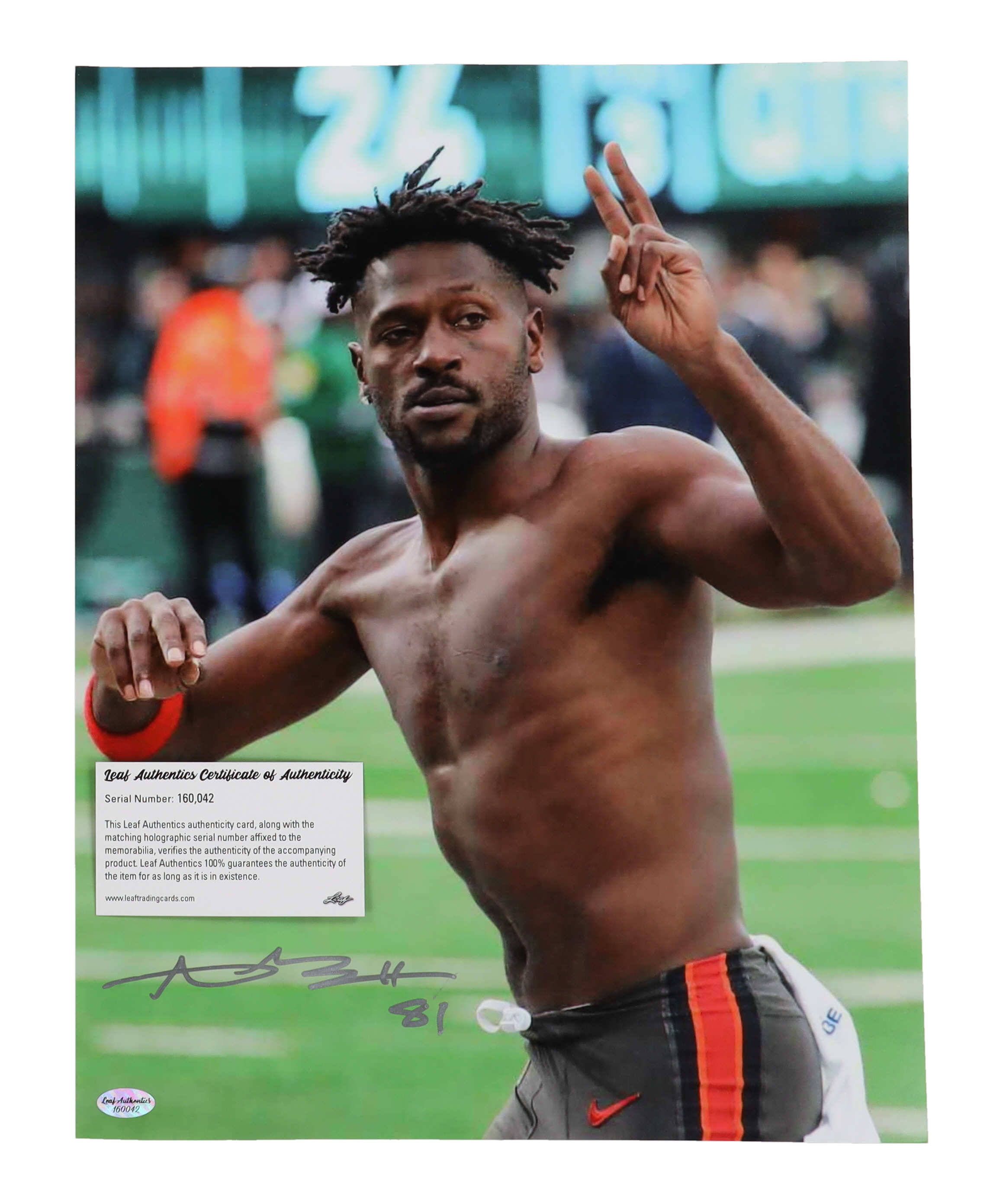 Photo measures 11" x 14" in size and has been hand signed by Antonio Brown (Tampa Bay Buccaneers).