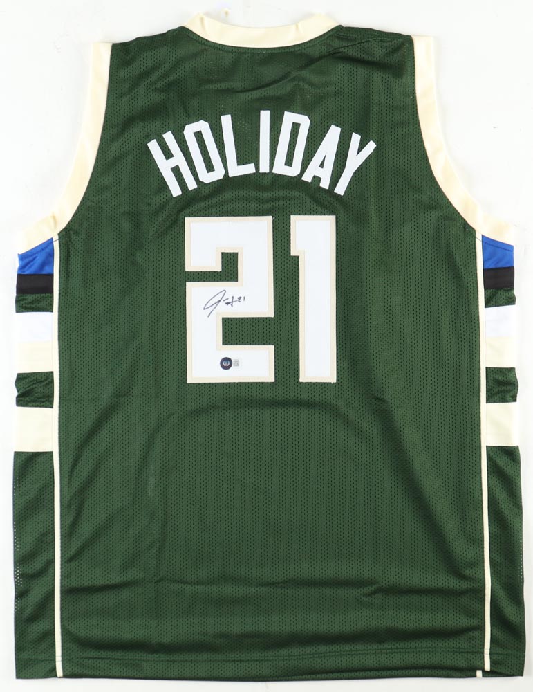 Custom jersey. Everything is sewn on, size XL. Hand-signed by Jrue Holiday.