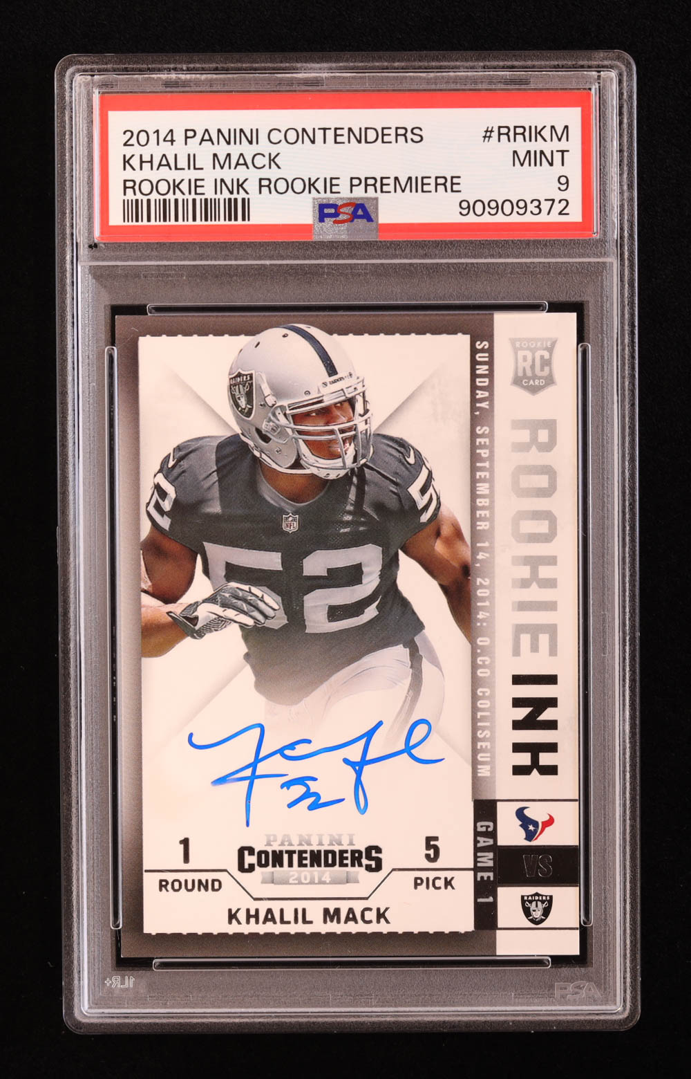 Khalil Mack 2014 Panini Contenders Rookie Ink Rookie Premiere #RRIKM EXCH RC (PSA 9)
