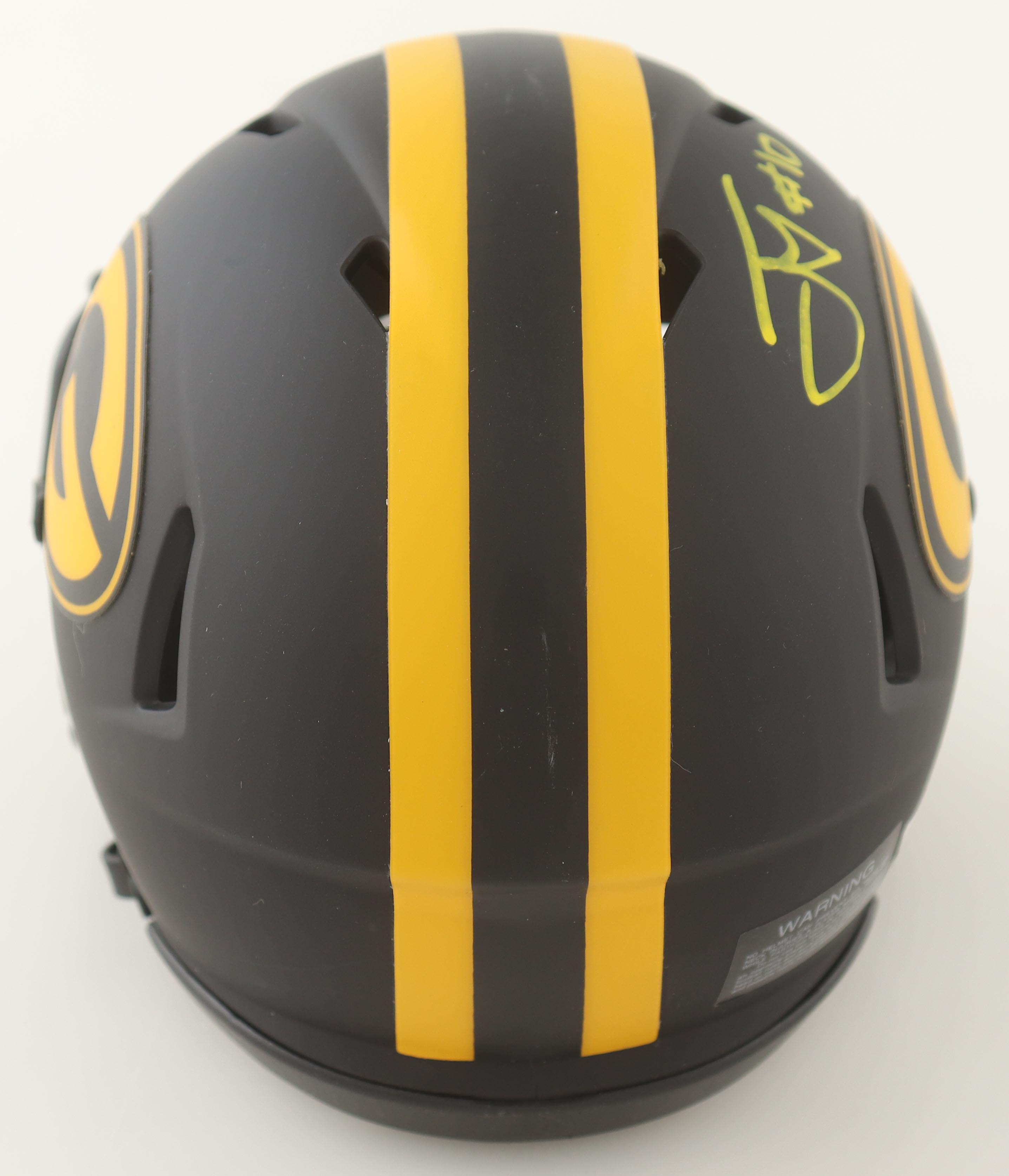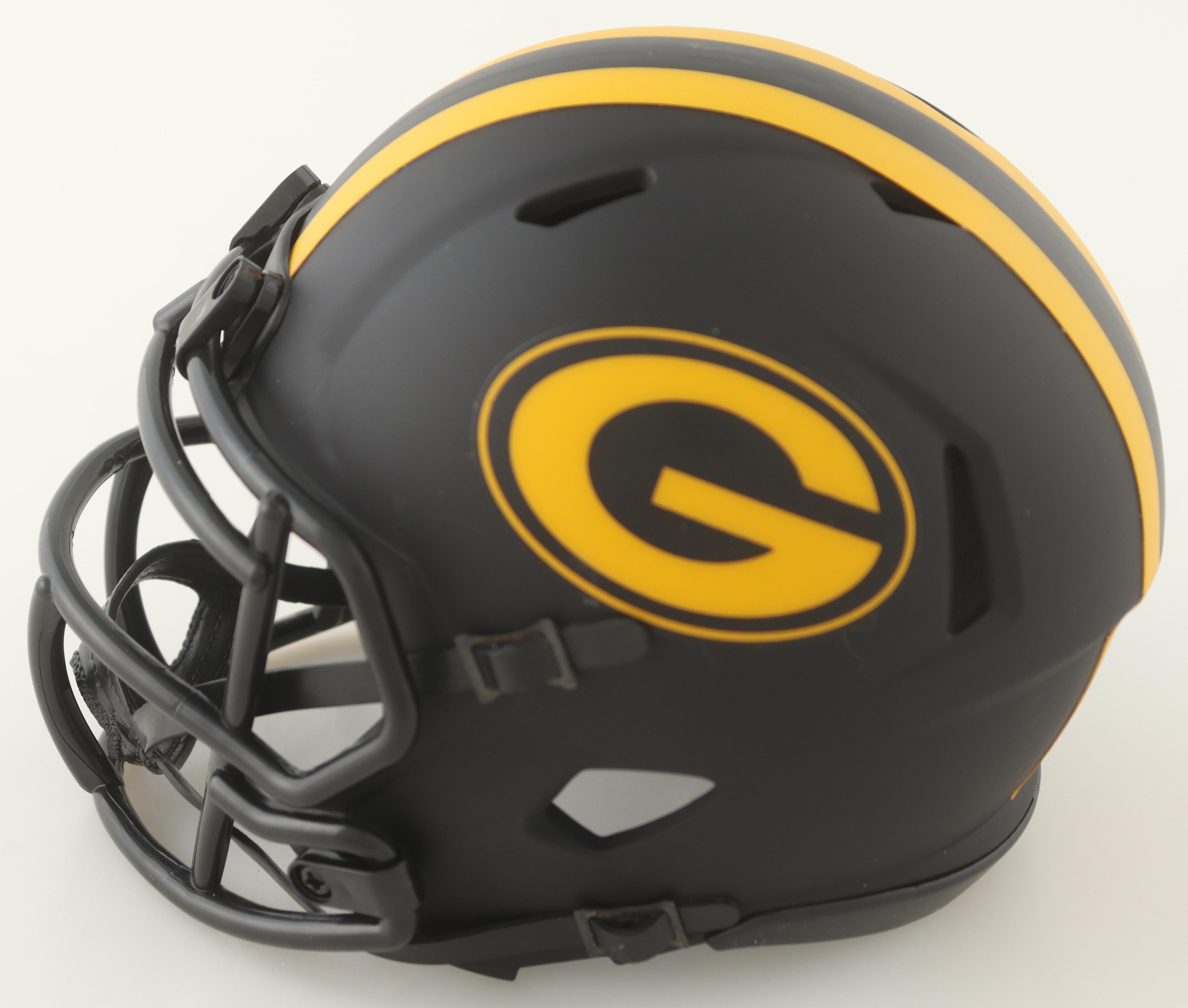 Riddell Green Bay Packers Eclipse Alternate Speed mini helmet. Hand-signed by Jordan Love.
