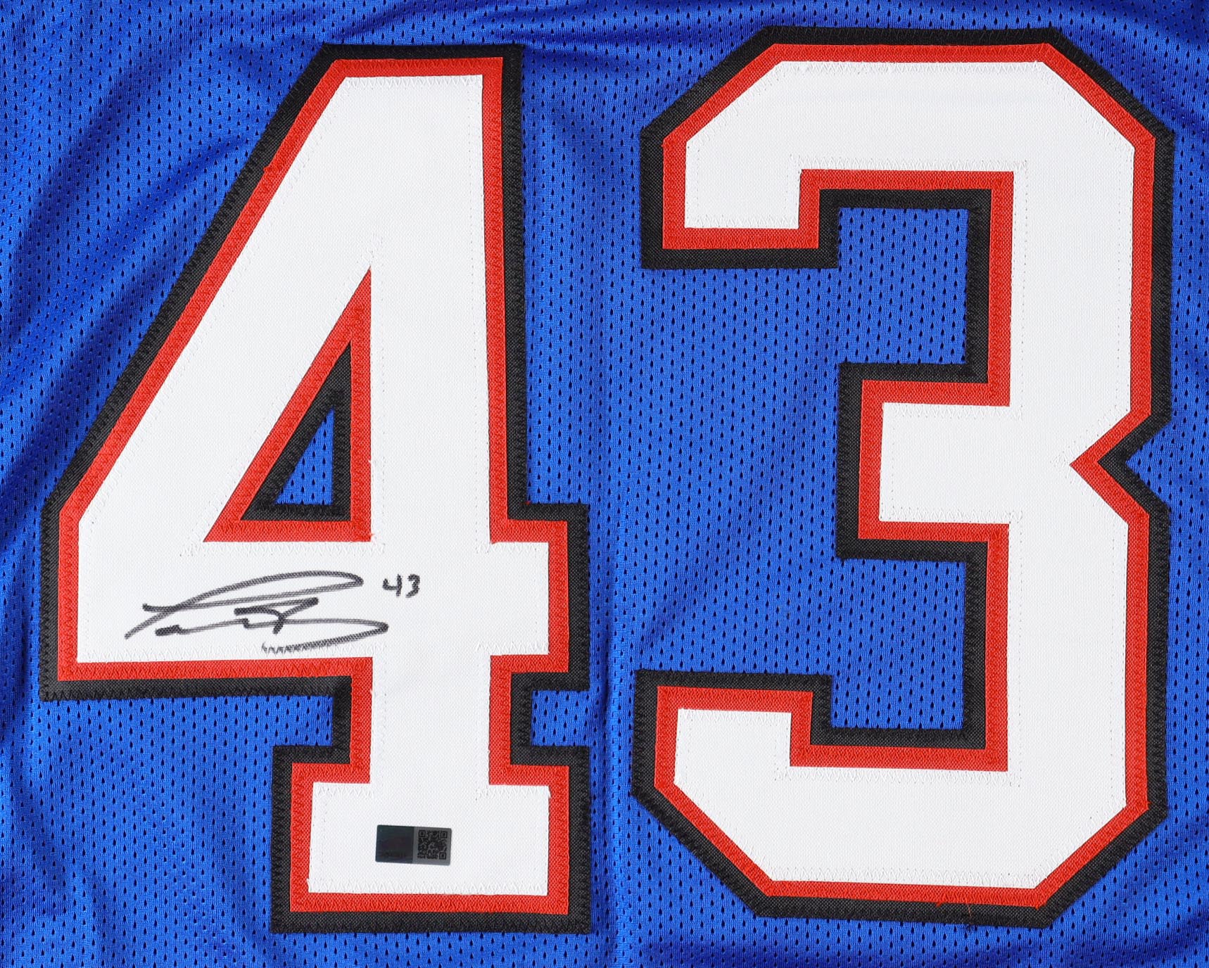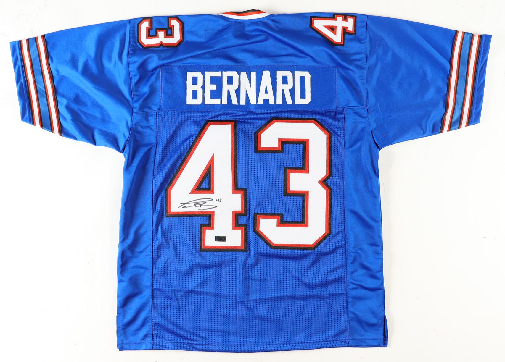 Custom jersey with everything sewn on, size XL. Hand-signed by Terrel Bernard.