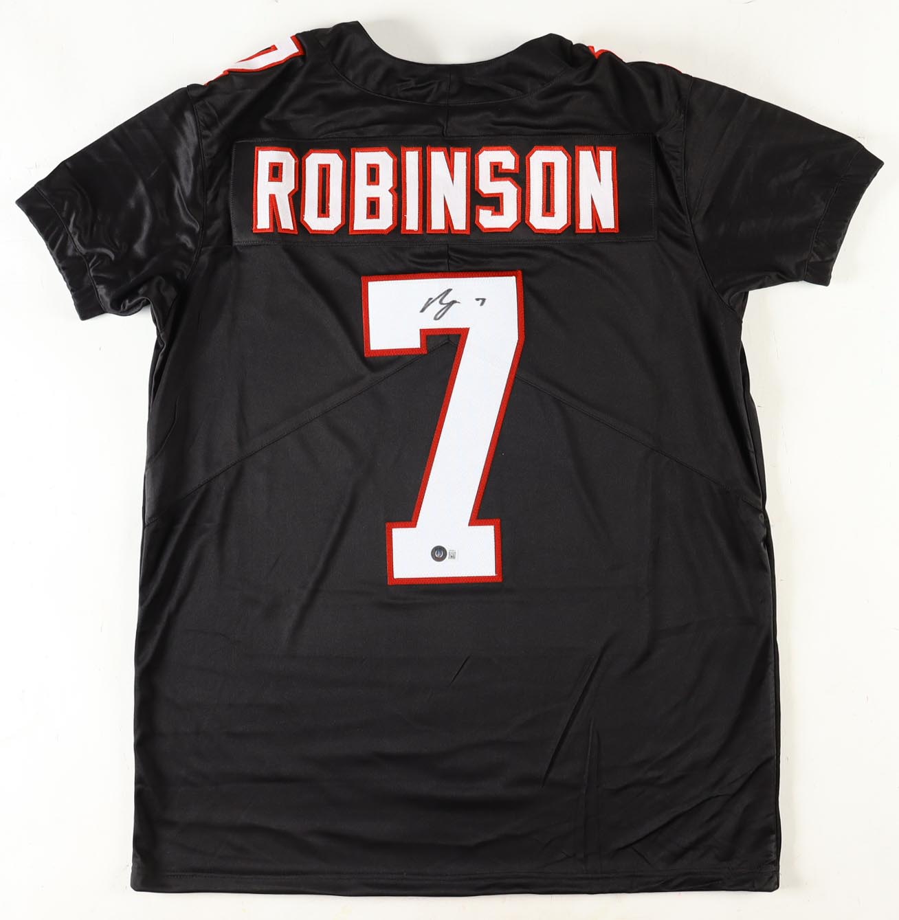 Custom jersey with everything sewn on, size XL. Hand-signed by Bijan Robinson.