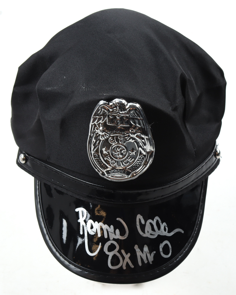 Replica Police Office Hat. Hand-signed and inscribed by Ronnie Coleman. Please note, there is scuffing on the autograph and hat.