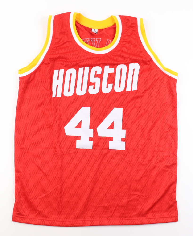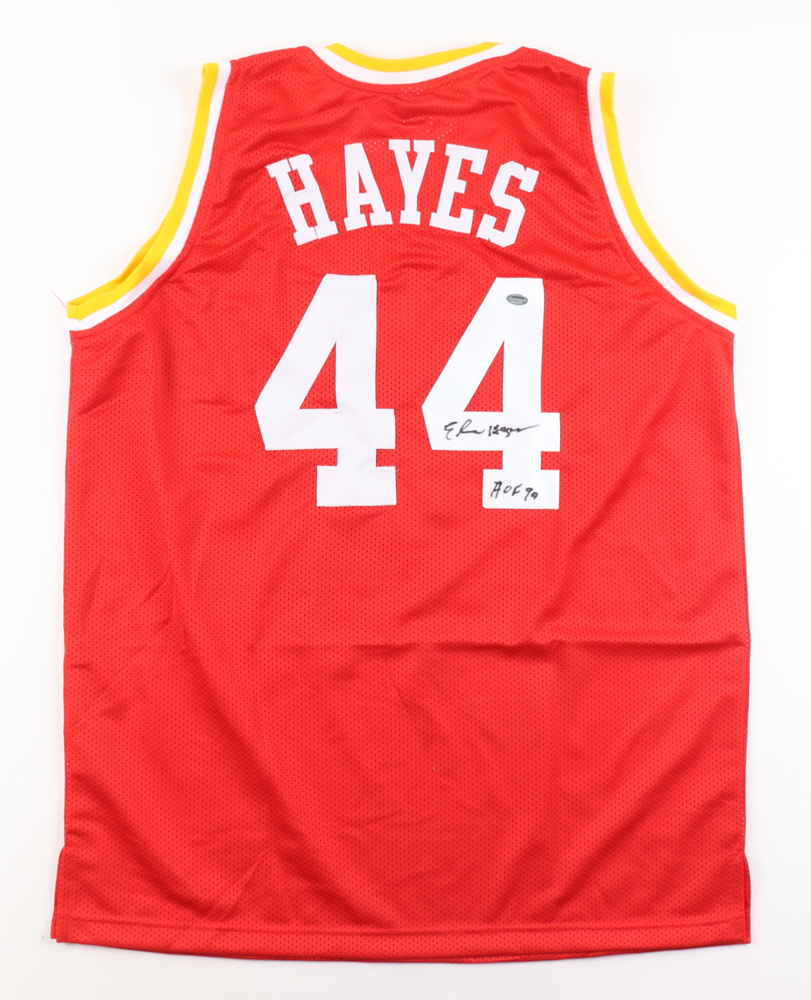 Custom jersey with everything sewn on, size L. Hand-signed and inscribed by Elvin Hayes (HOF).