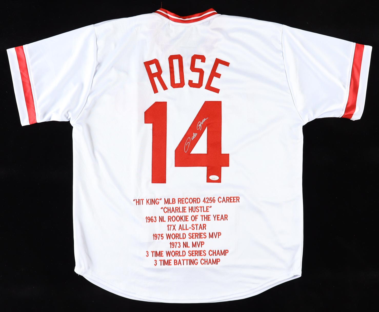 Pete Rose Signed Career Highlight Stat Jersey (JSA)