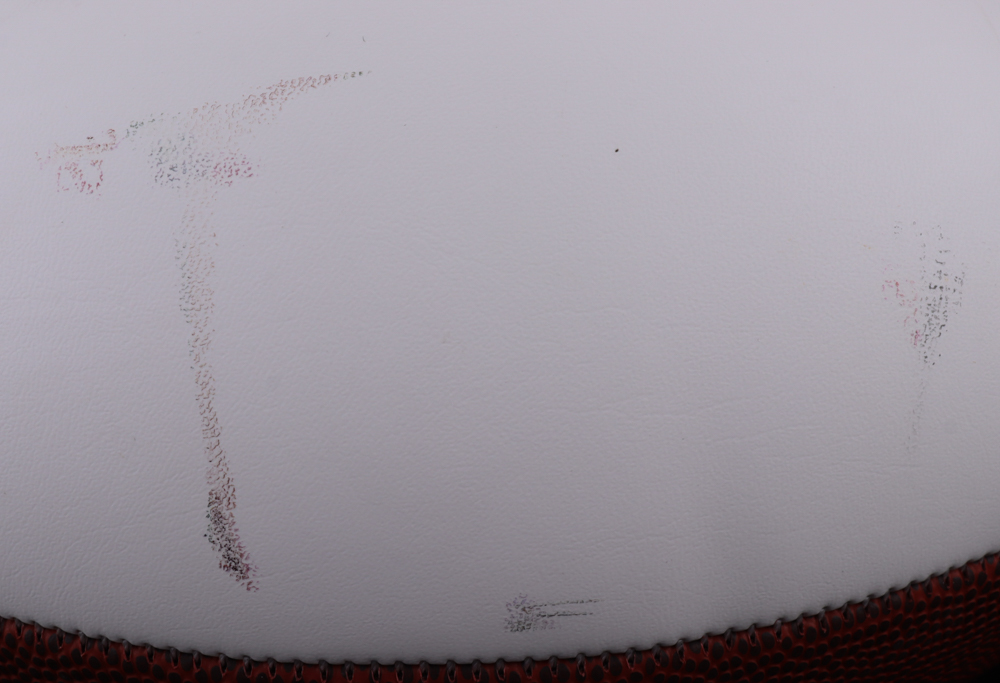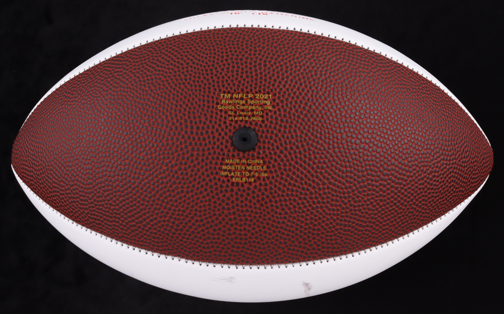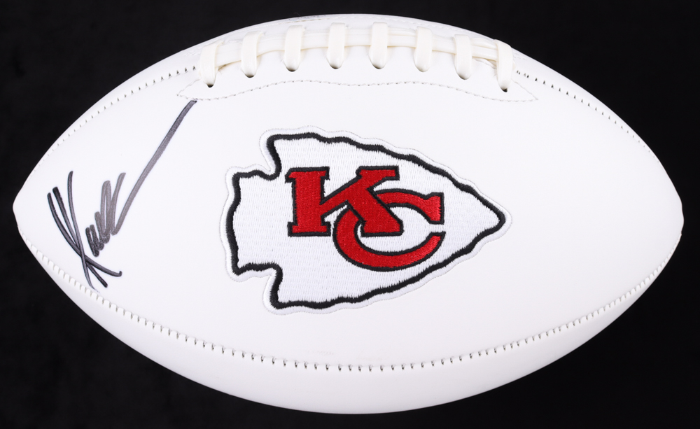 Kansas City Chiefs logo football has been hand-signed by Marcus Allen (HOF). Please note the discoloration throughout the football. The signature has bled.