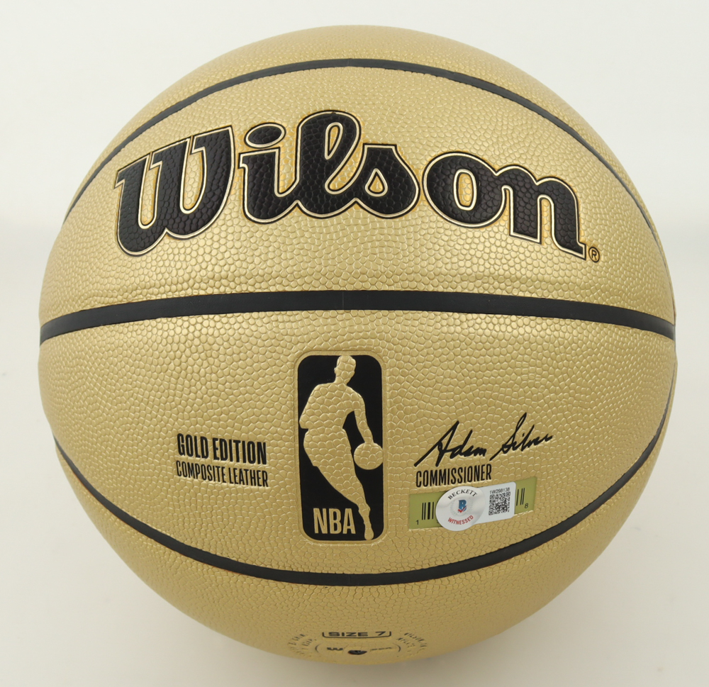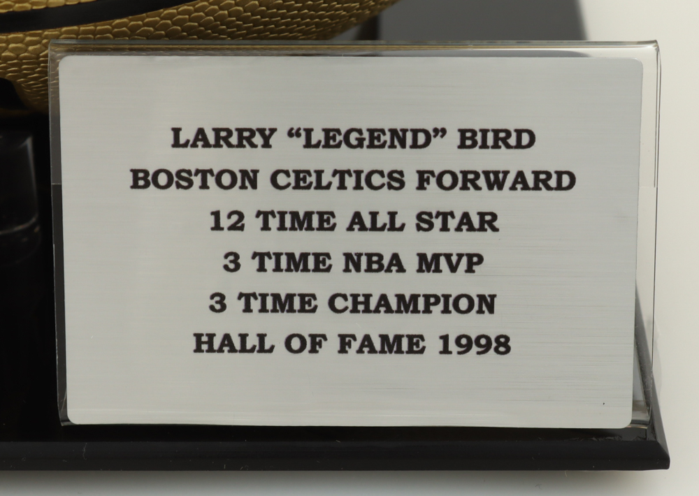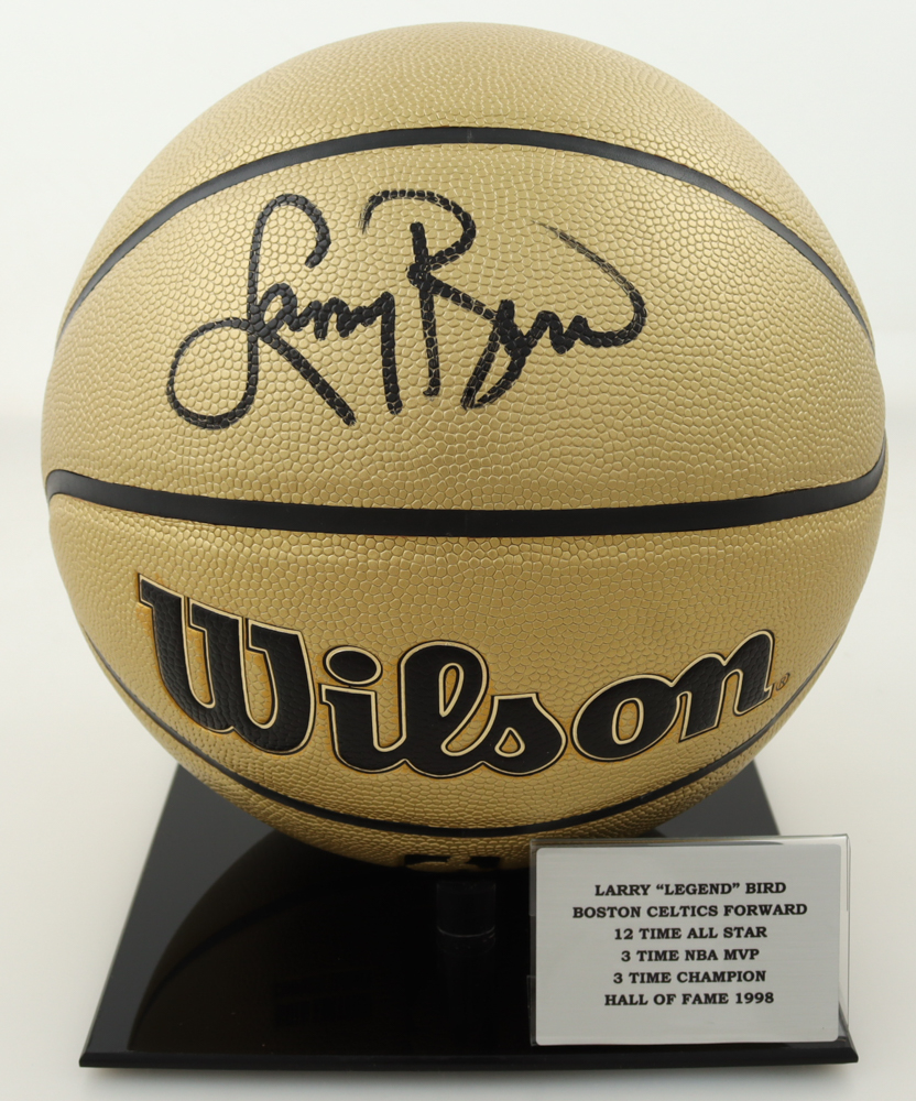 Wilson Gold Edition NBA basketball. Hand-signed by Larry Bird (Boston Celtics, HOF). The acrylic display stand is included as shown.