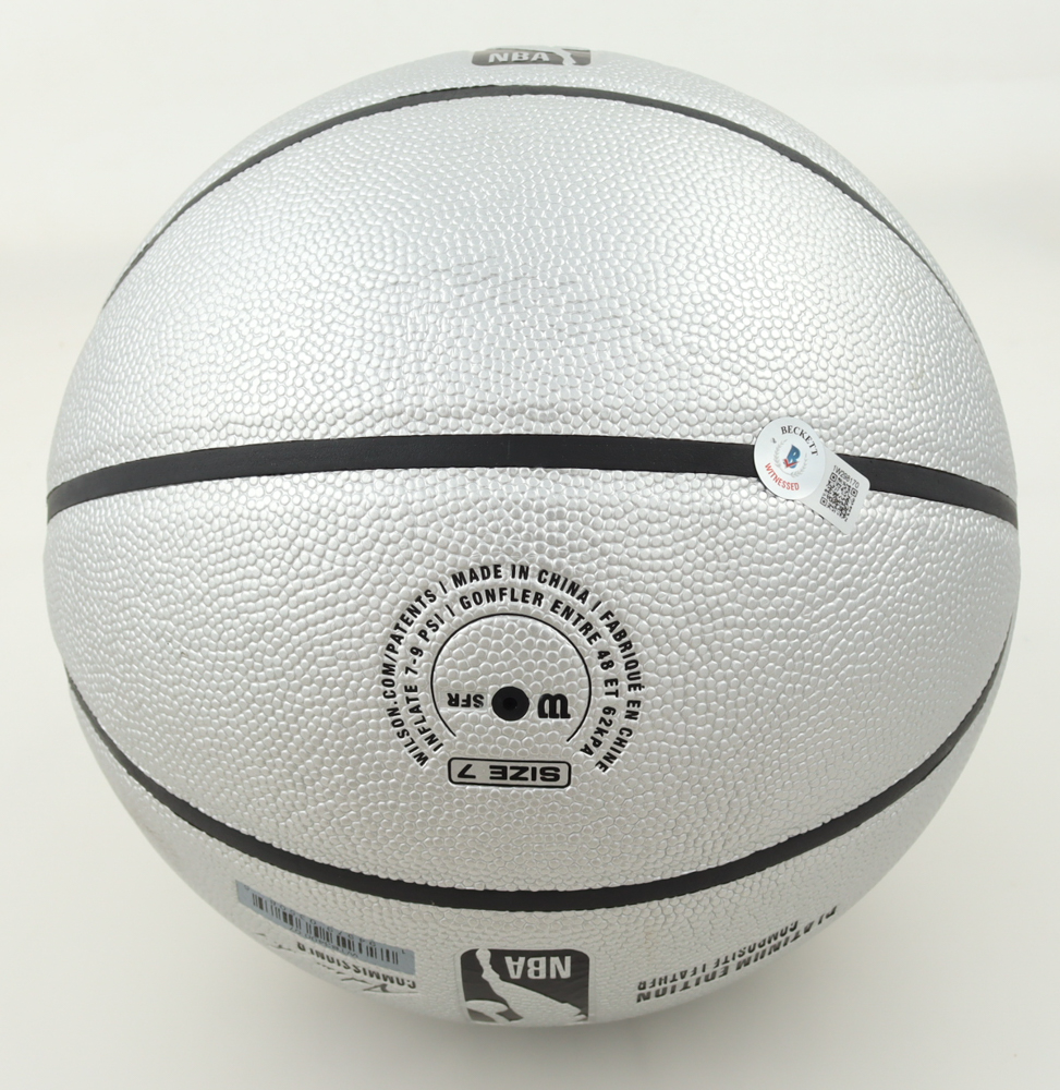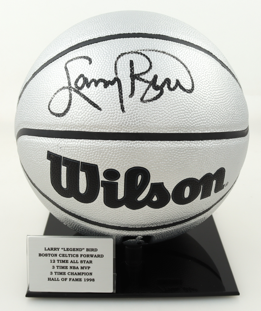 Wilson Platinum Edition NBA basketball. Hand-signed by Larry Bird (Boston Celtics, HOF). Includes display stand as shown.