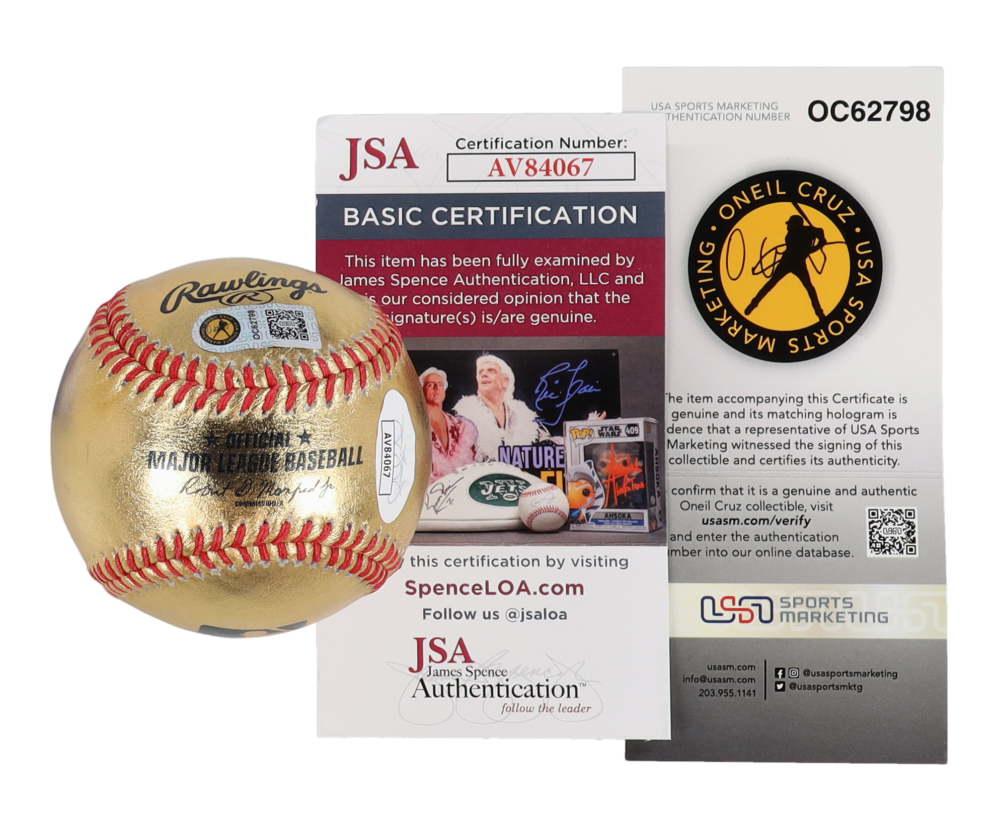 The lot / autograph(s) includes an official USA Sports Marketing Oneil Cruz hologram as well as an official James Spence Authentication (JSA) hologram and matching COA for authenticity purposes.