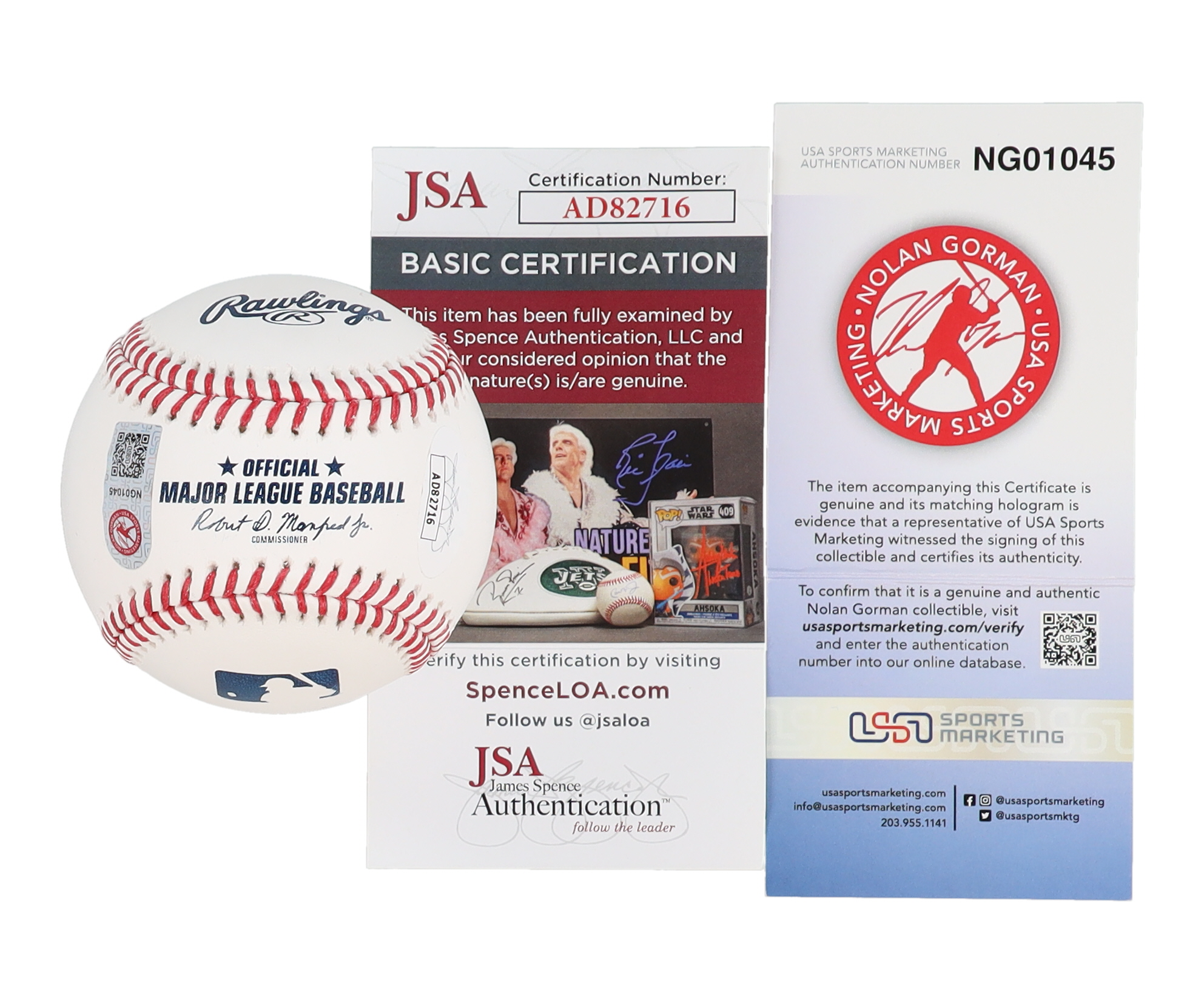 The autograph(s) includes an official James Spence Authentication (JSA) hologram and matching COA for authenticity purposes as well as an official USA Sports Marketing Nolan Gorman hologram and COA for authenticity purposes.