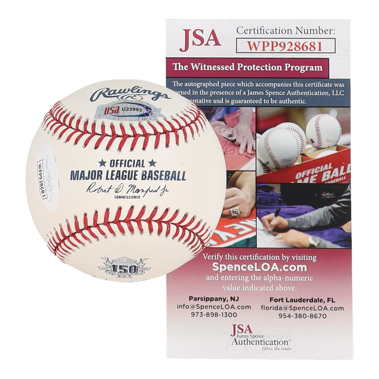 The autograph(s) includes an official James Spence Authentication (JSA) hologram and matching COA for authenticity purposes as well as an official USA Sports Marketing (USA SM) hologram for authenticity purposes. The signing of this item was witnessed by JSA.