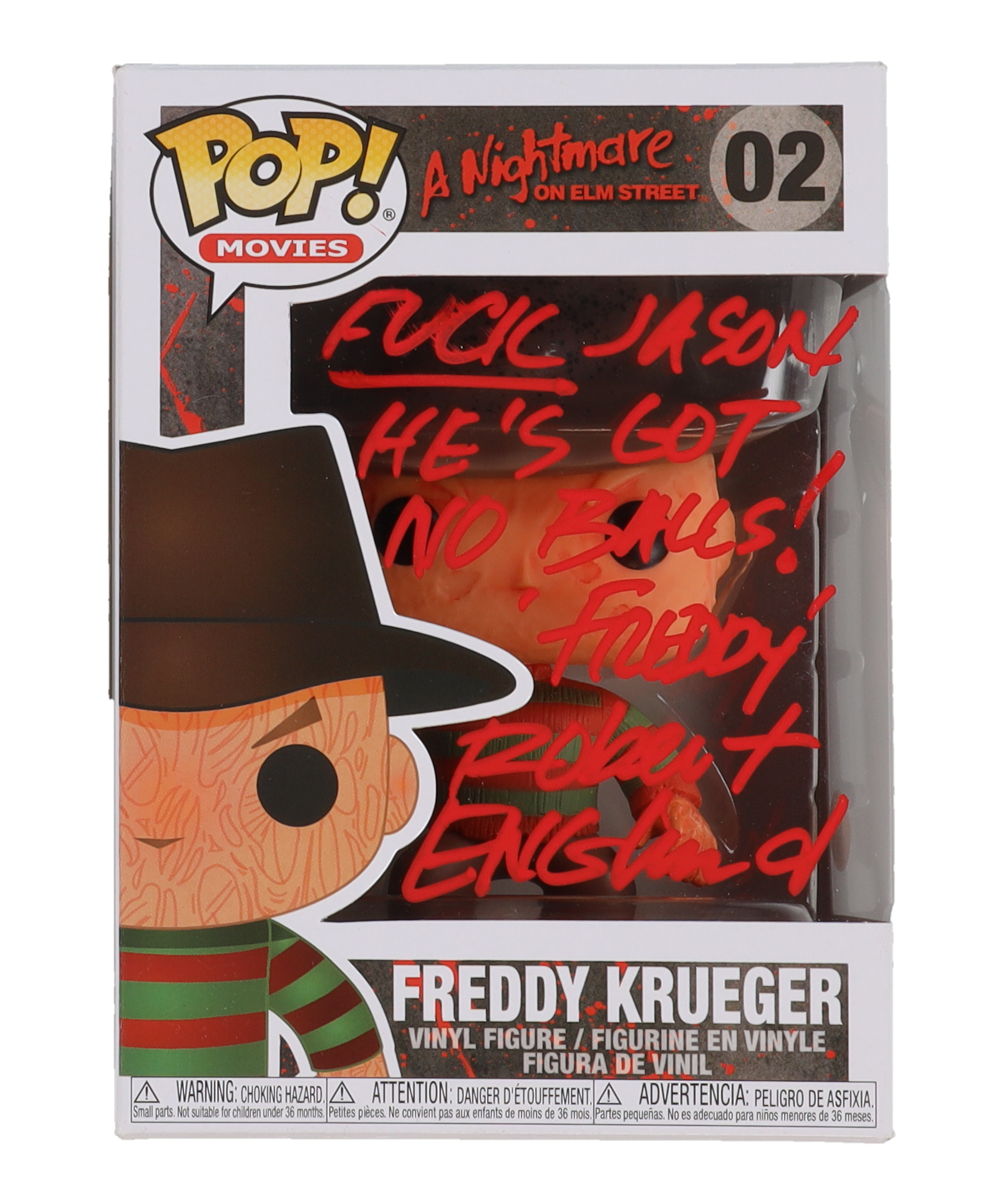 Robert Englund Signed "A Nightmare on Elm Street" #02 Freddy Krueger Funko Pop! Vinyl Figure with "Jason" Feud Inscription (JSA)
