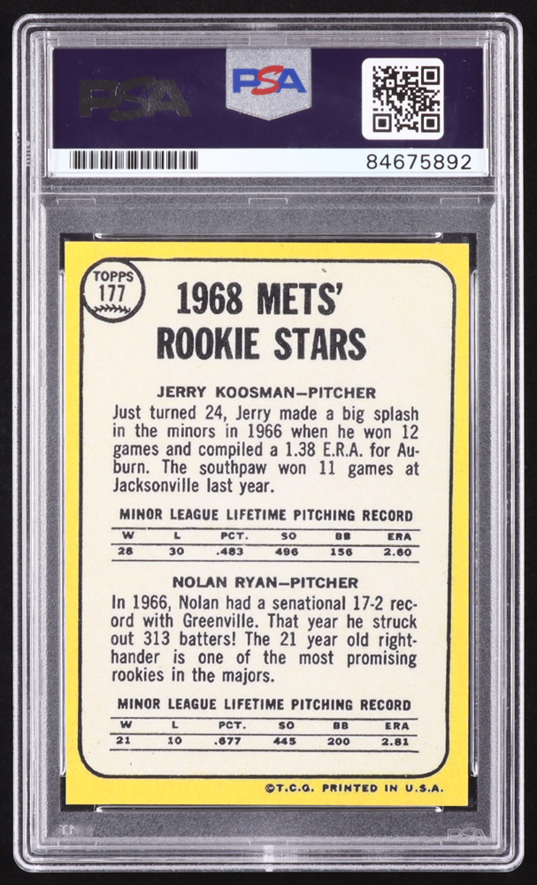 Jerry Koosman & Nolan Ryan Signed 1968 Topps #177 Rookie Stars Reprint RC (PSA)