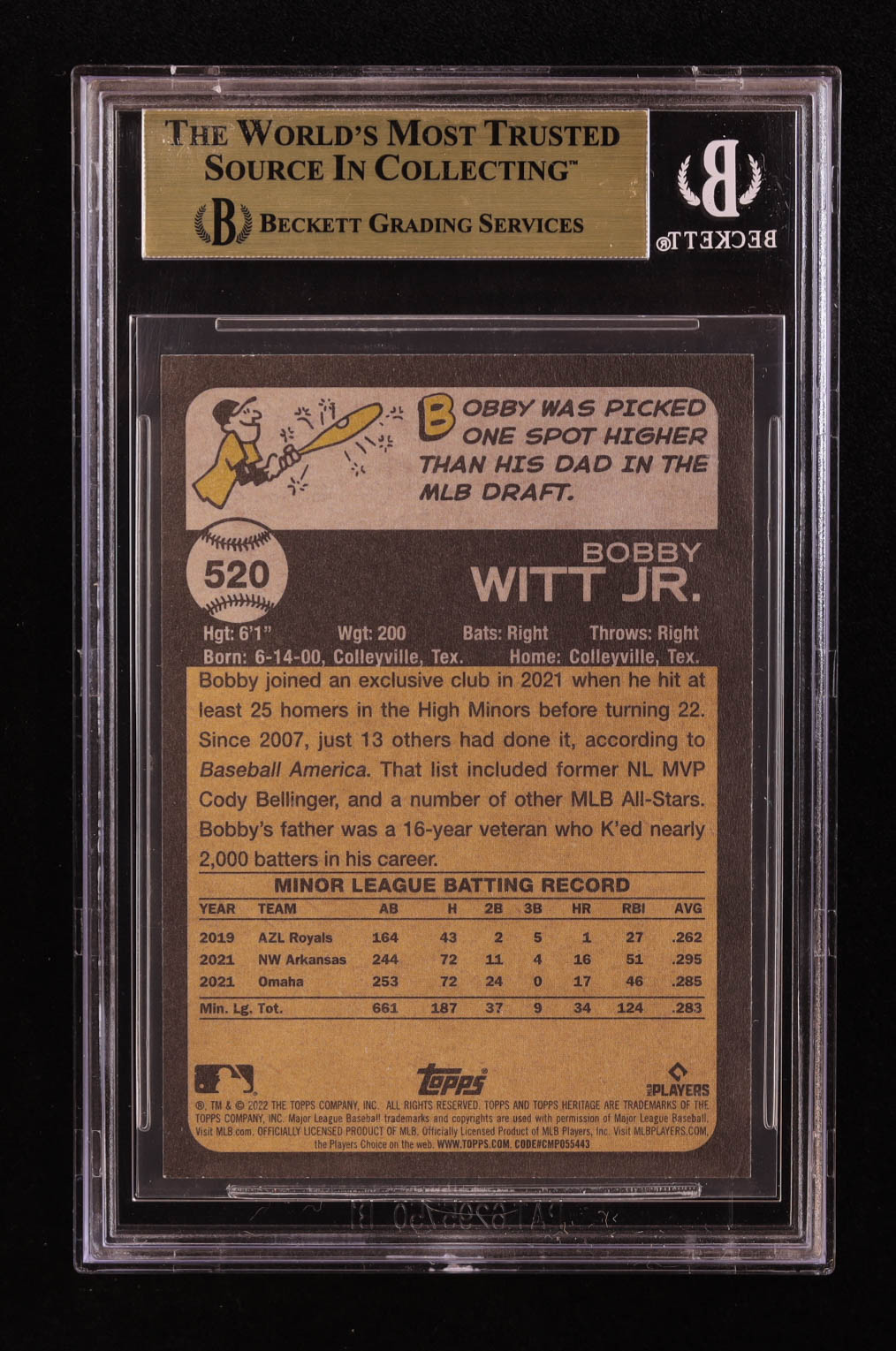 Bobby Witt Jr. 2022 Topps Heritage #520 RC (BGS 9.5)