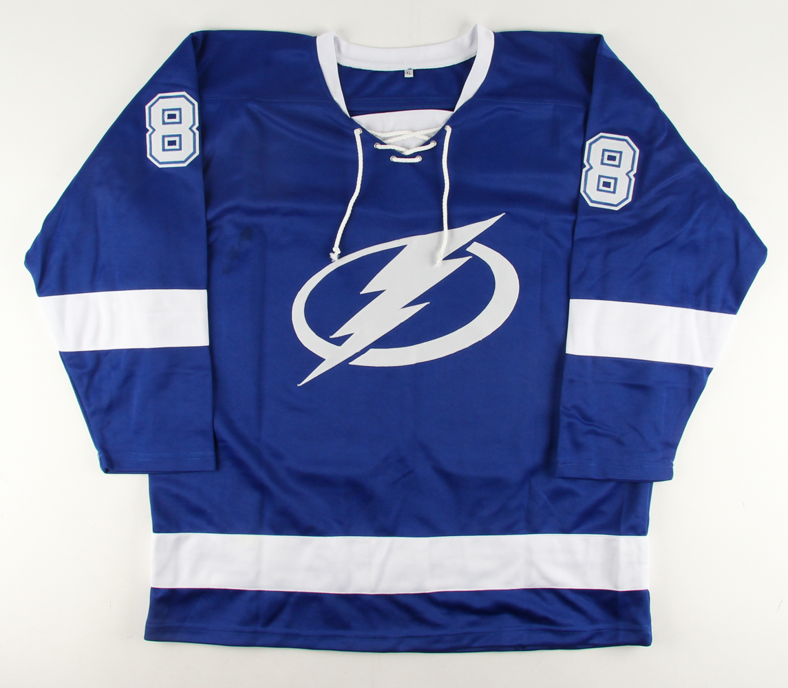 Custom on-ice style jersey. Everything is sewn on, size XL. Hand-signed in blue felt-tip pen by Andrei Vasilevskiy.