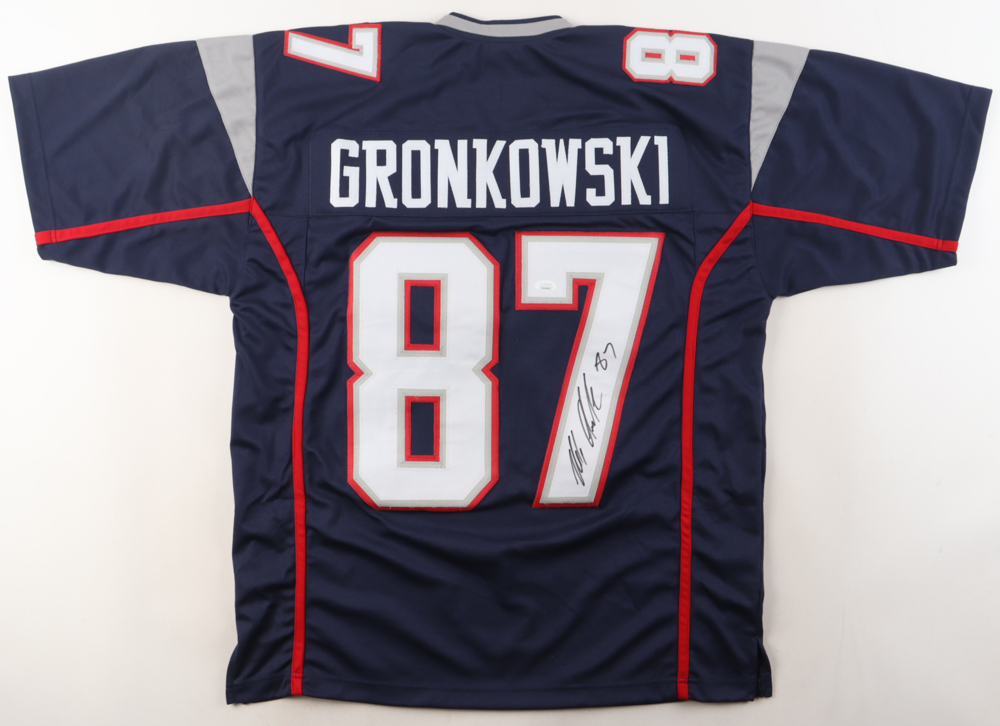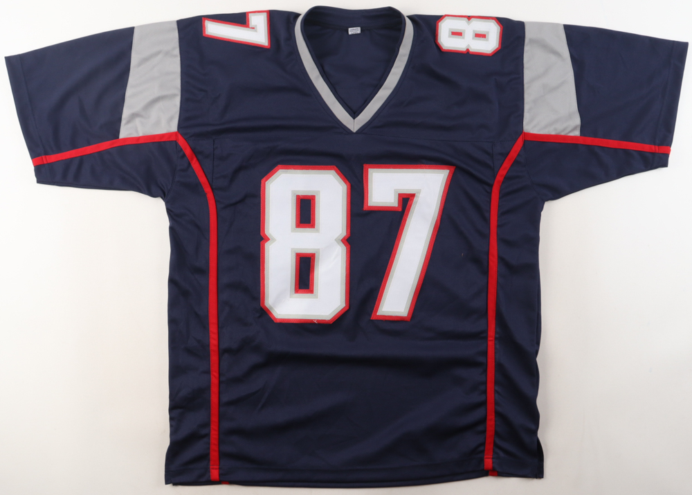 Custom jersey with everything sewn on, size XL. Hand-signed by Rob Gronkowski.