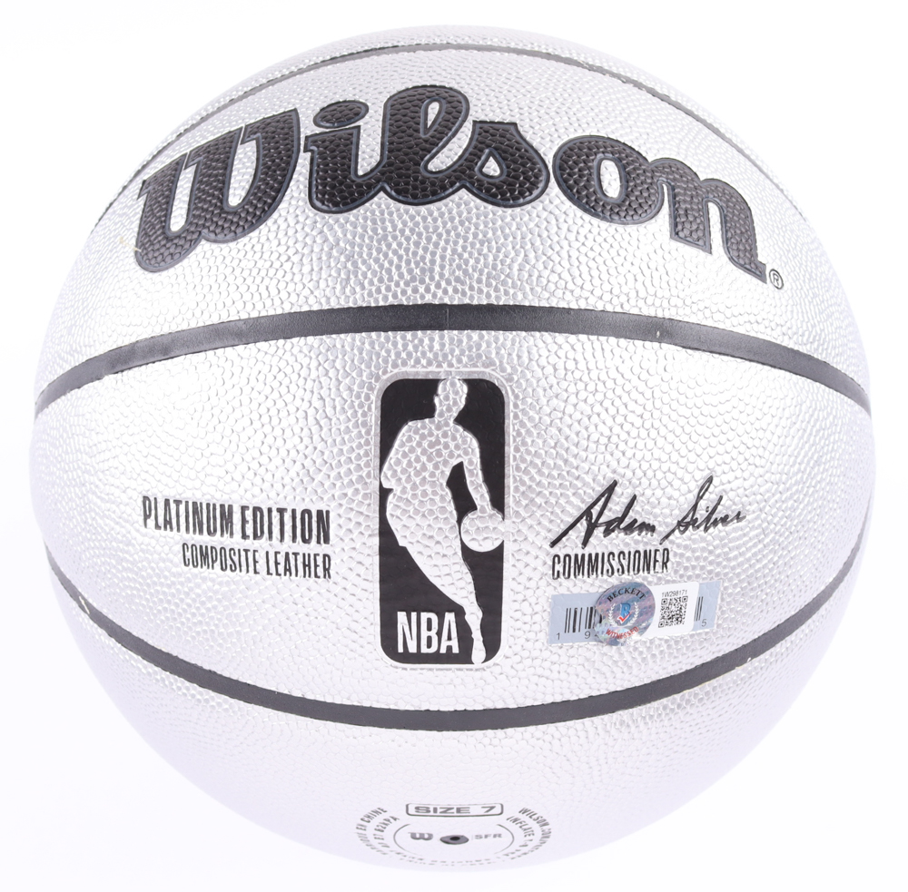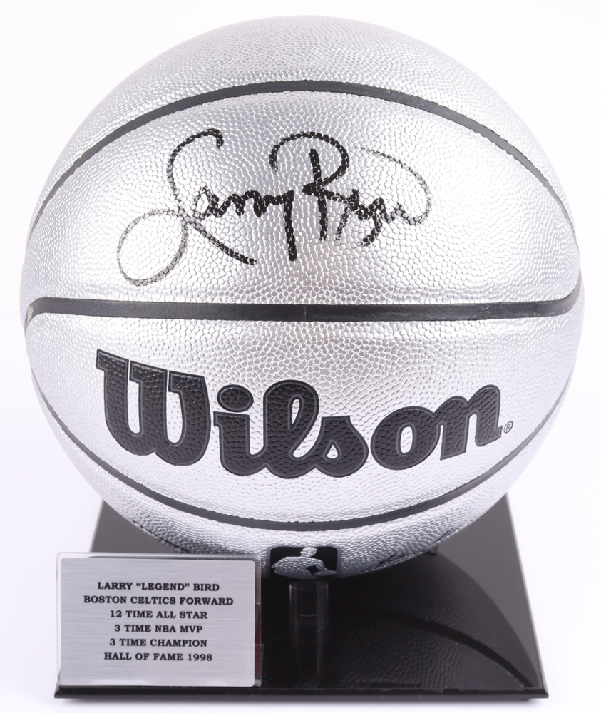 Wilson Platinum Edition NBA basketball. Hand-signed by Larry Bird (Boston Celtics, HOF). Includes display stand as shown.