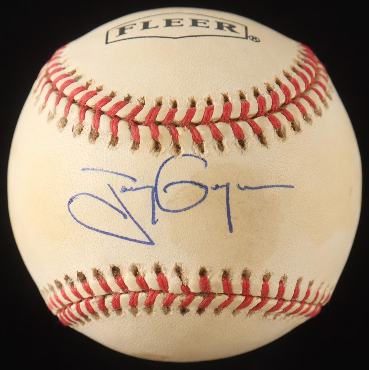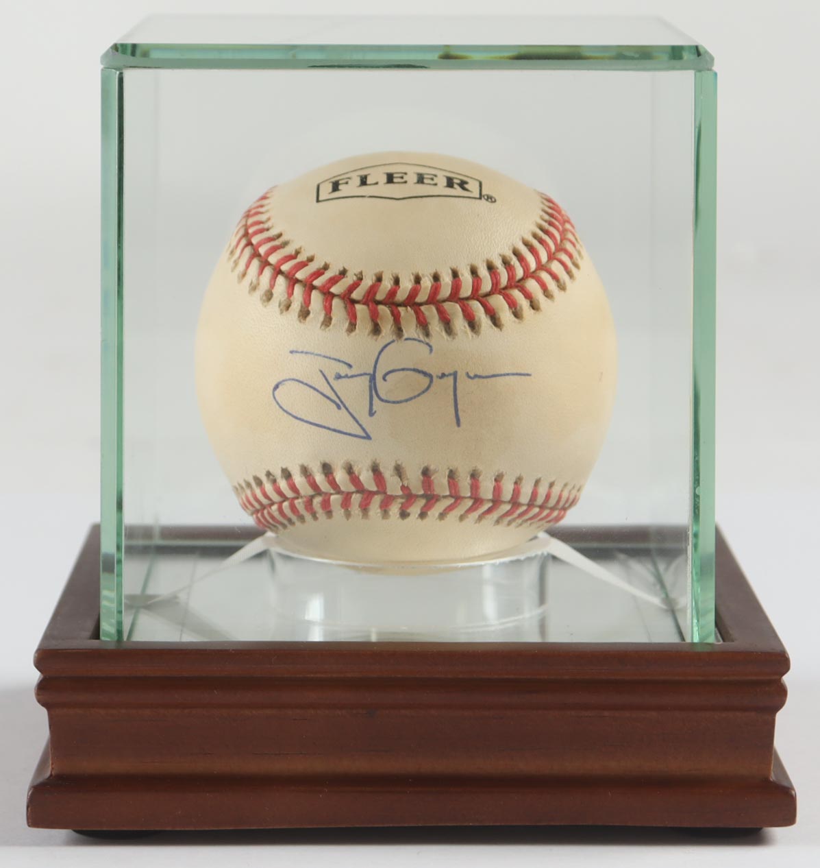 Rawlings Fleer Official National League baseball. Hand-signed by Tony Gwynn (D. 2014, San Diego Padres, HOF). Display case is included as shown. Please note, the ball is naturally toned.