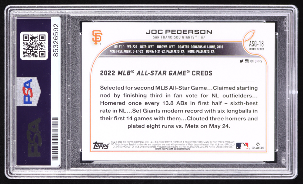 Joc Pederson Signed 2022 Topps All Star Game #ASG18 (PSA)