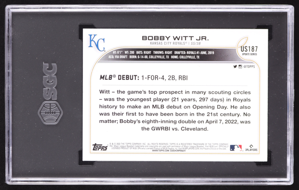 Bobby Witt Jr. 2022 Topps Update #US187 RD RC (SGC 8.5)