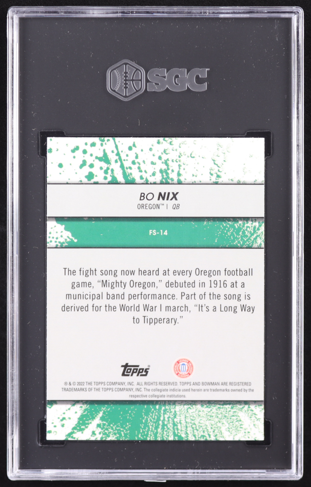 Bo Nix 2022 Bowman's Best University Fight Song #FS14 RC (SGC 10)
