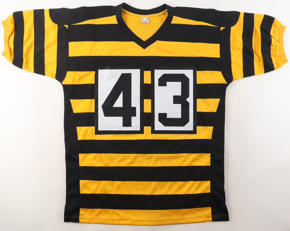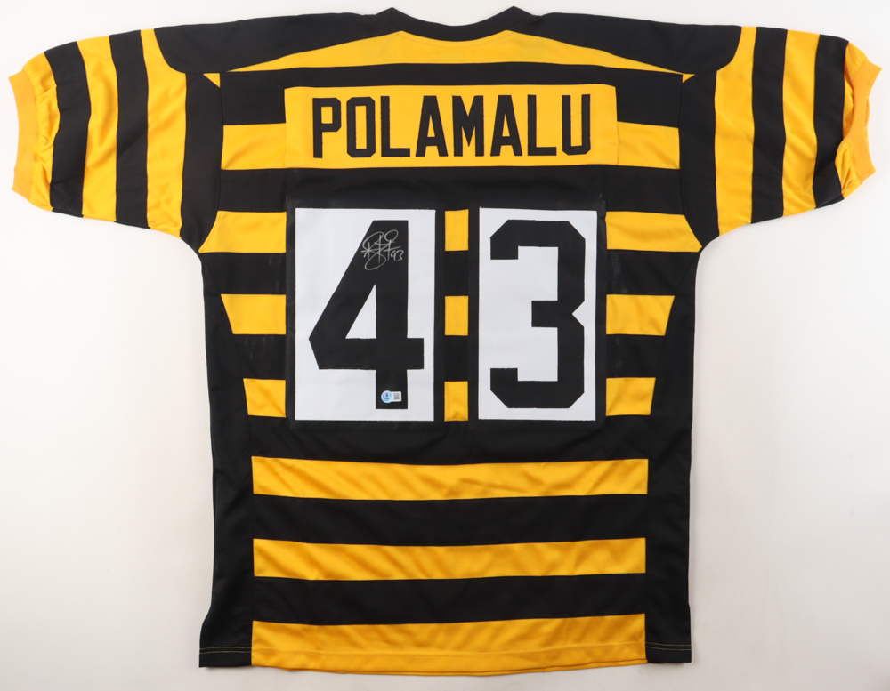 Custom style jersey with everything sewn on, size XL. Hand-signed by Troy Polamalu (HOF).