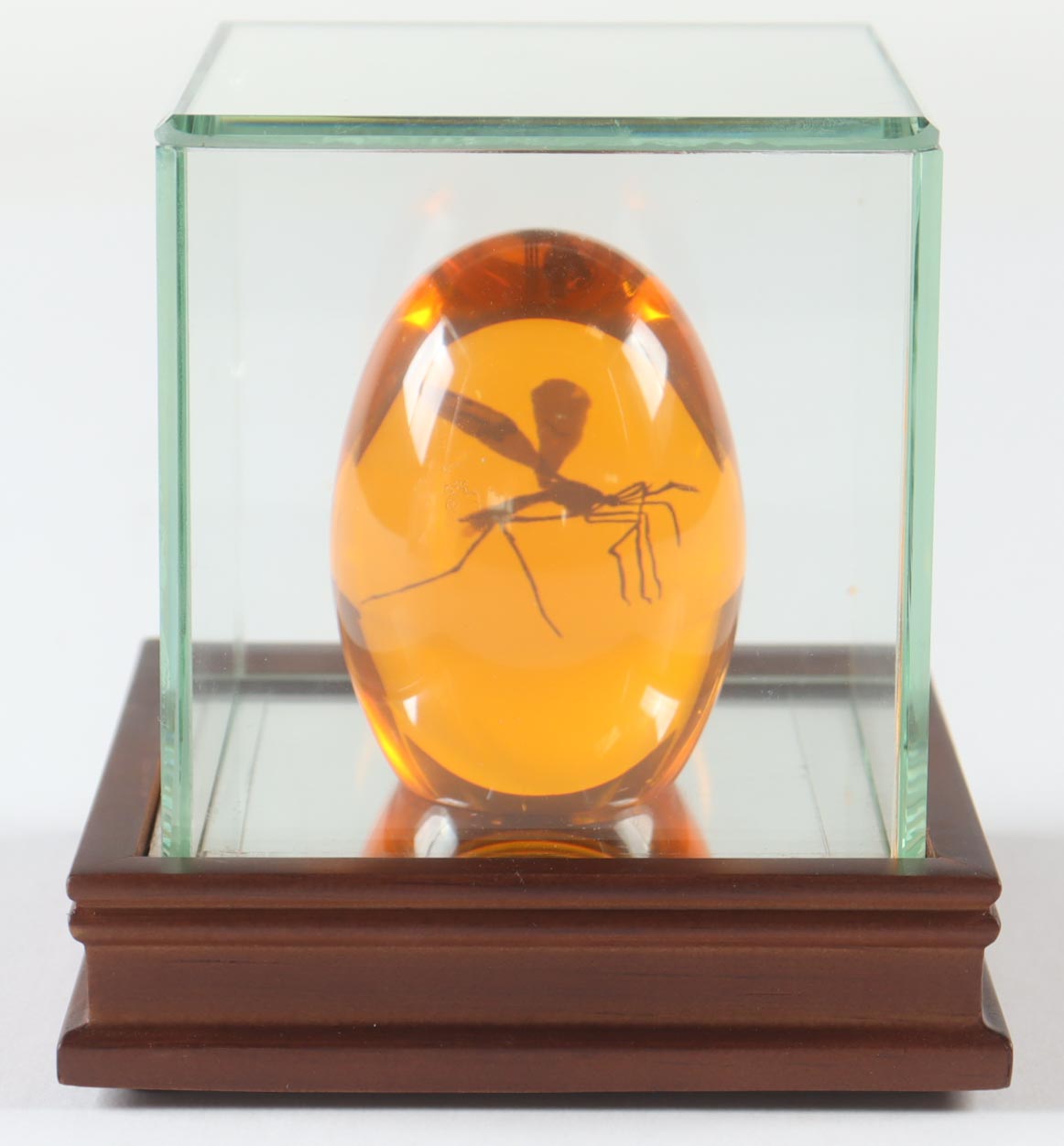 Jurassic Park Replica Prop Mosquito In Amber. Approximately 3" in height. Display case is included as show.