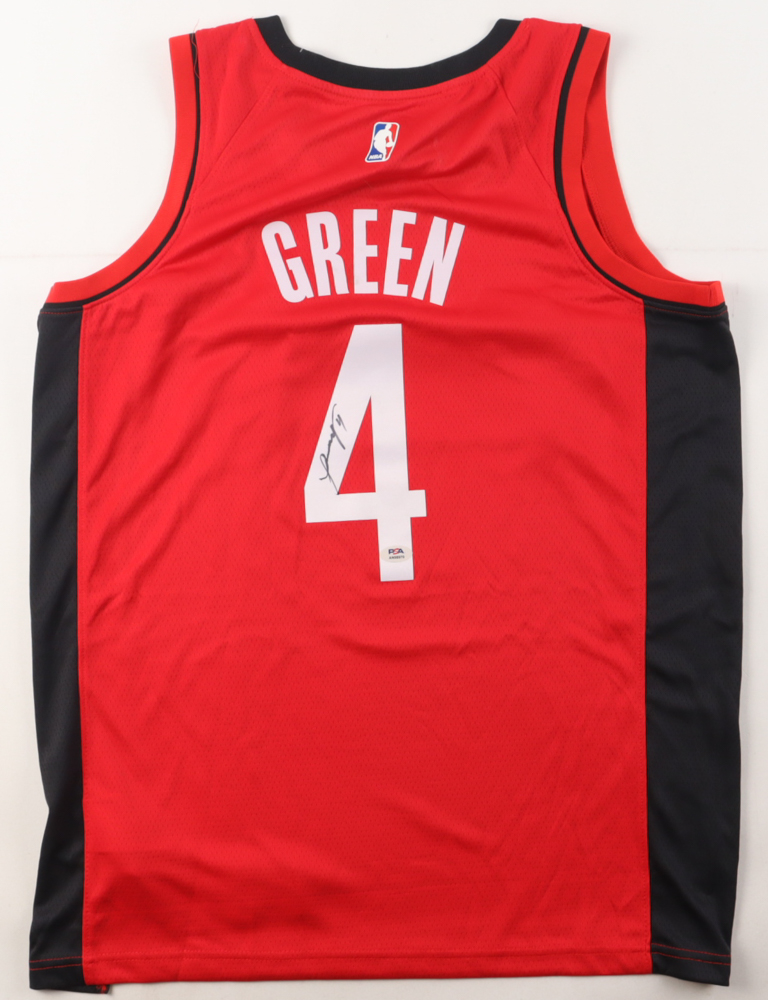 Custom jersey. Everything is pressed on, size 48. Hand-signed by Jalen Green.