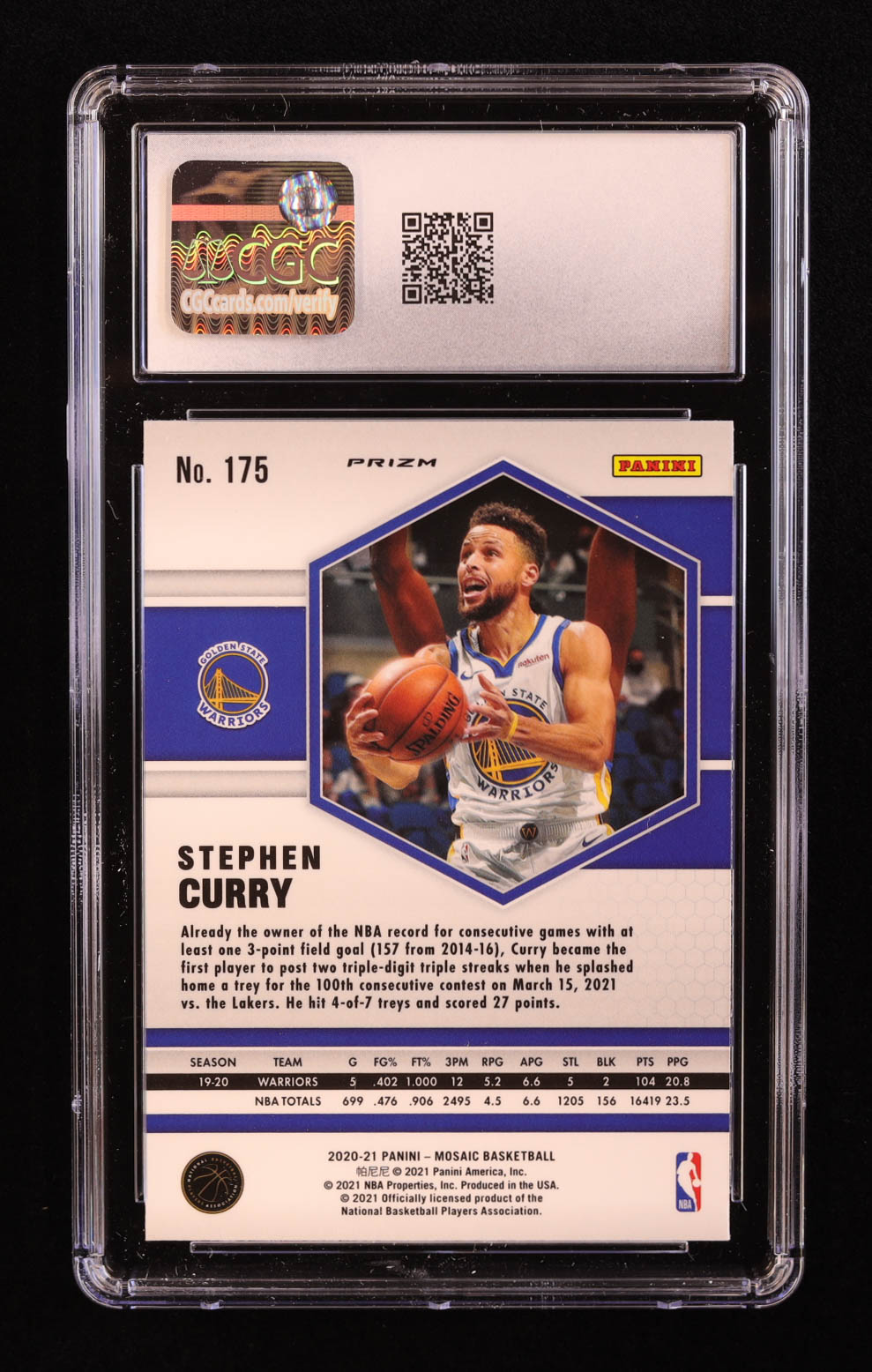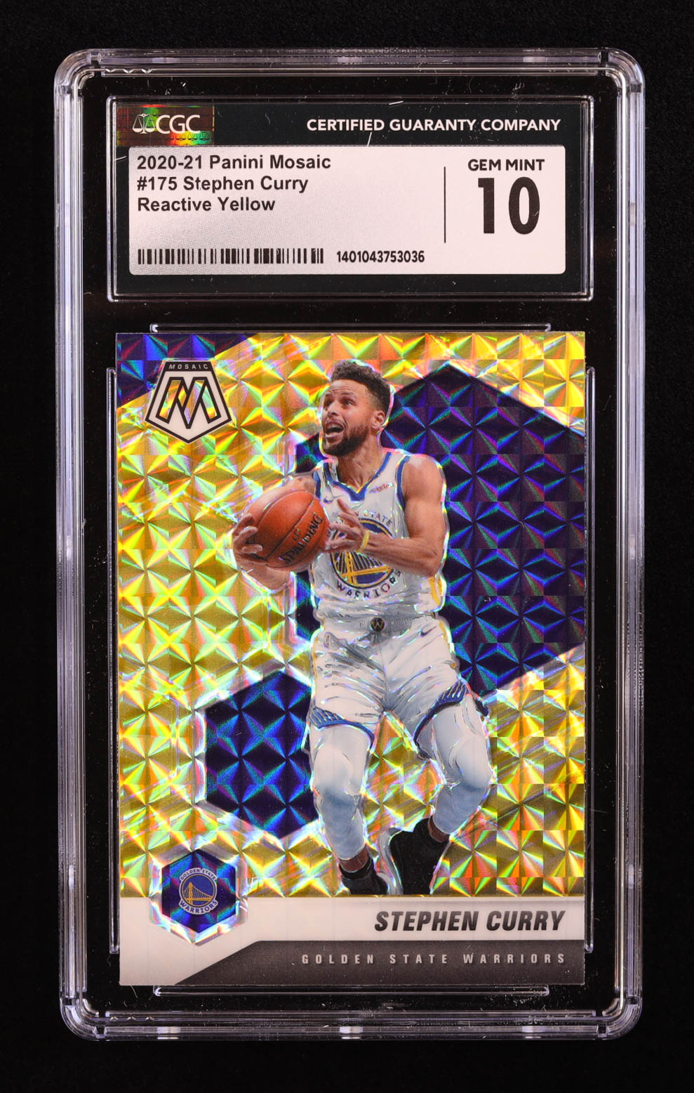 Stephen Curry 2020-21 Panini Mosaic Mosaic Reactive Yellow #175 (CGC 10)