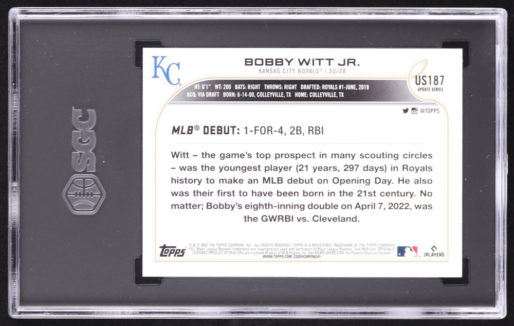 Bobby Witt Jr. 2022 Topps Update #US187 RD RC (SGC 8.5)