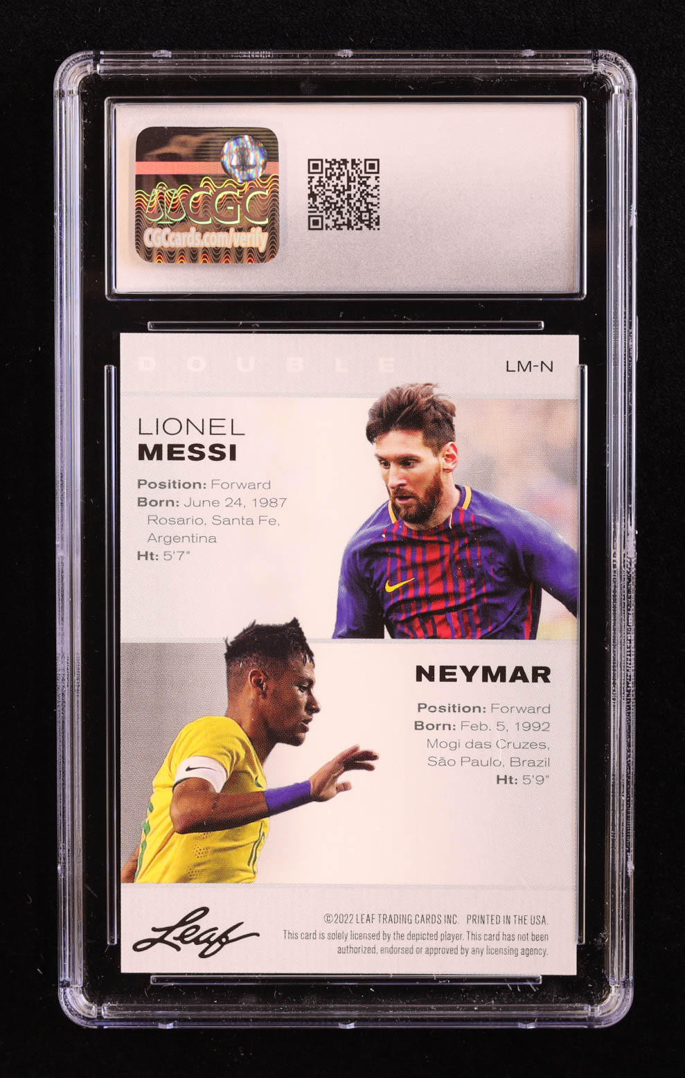 Lionel Messi / Neymar 2022 Leaf Special Release Exclusive Legends Edition Double #LMN (CGC 10)