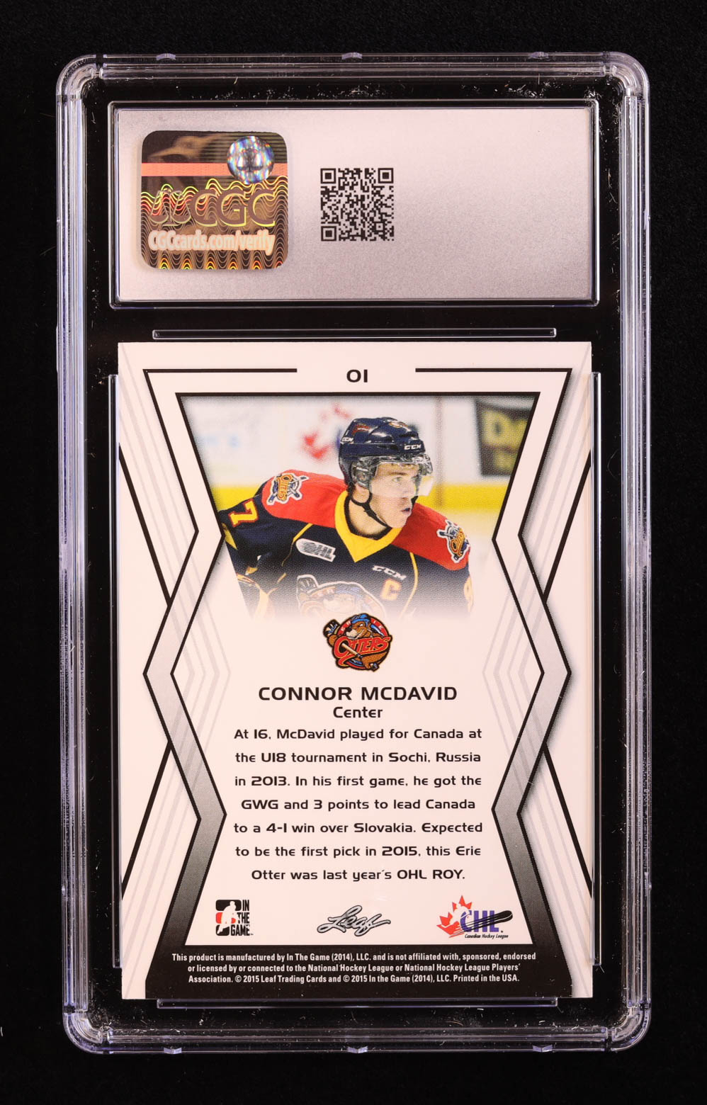 Connor McDavid 2015-16 Leaf In the Game CHL Draft #01 RC (CGC 10)
