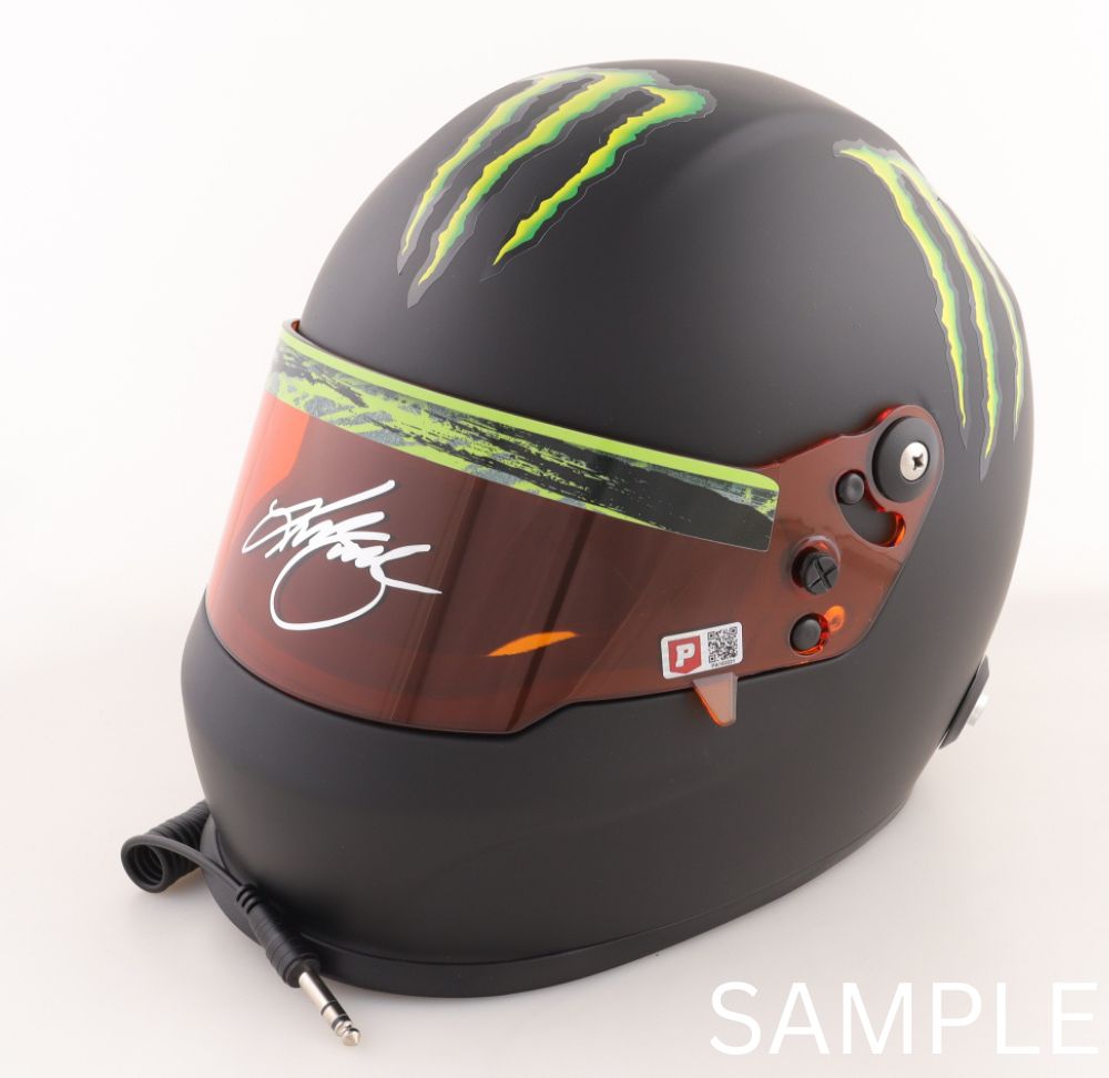 Full-size replica NASCAR helmet, hand-signed on the visor by Kurt Busch.