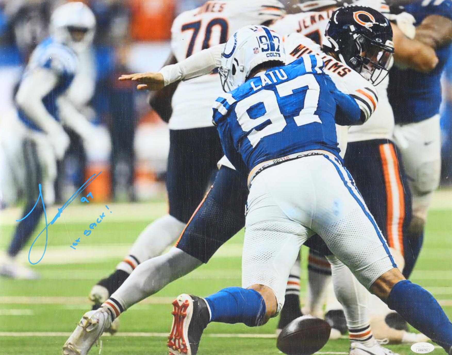 Laiatu Latu Signed Colts 16x20 Photo Inscribed "1st Sack" (JSA)